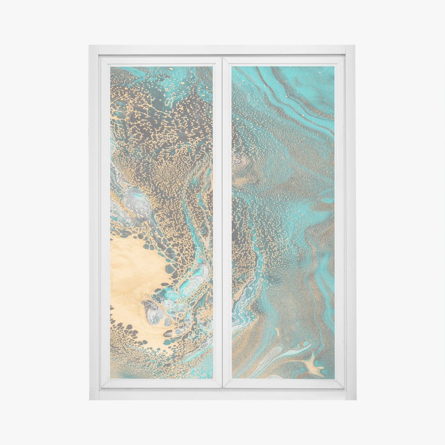 Fensteraufkleber Türkis und gold fließende abstraktion