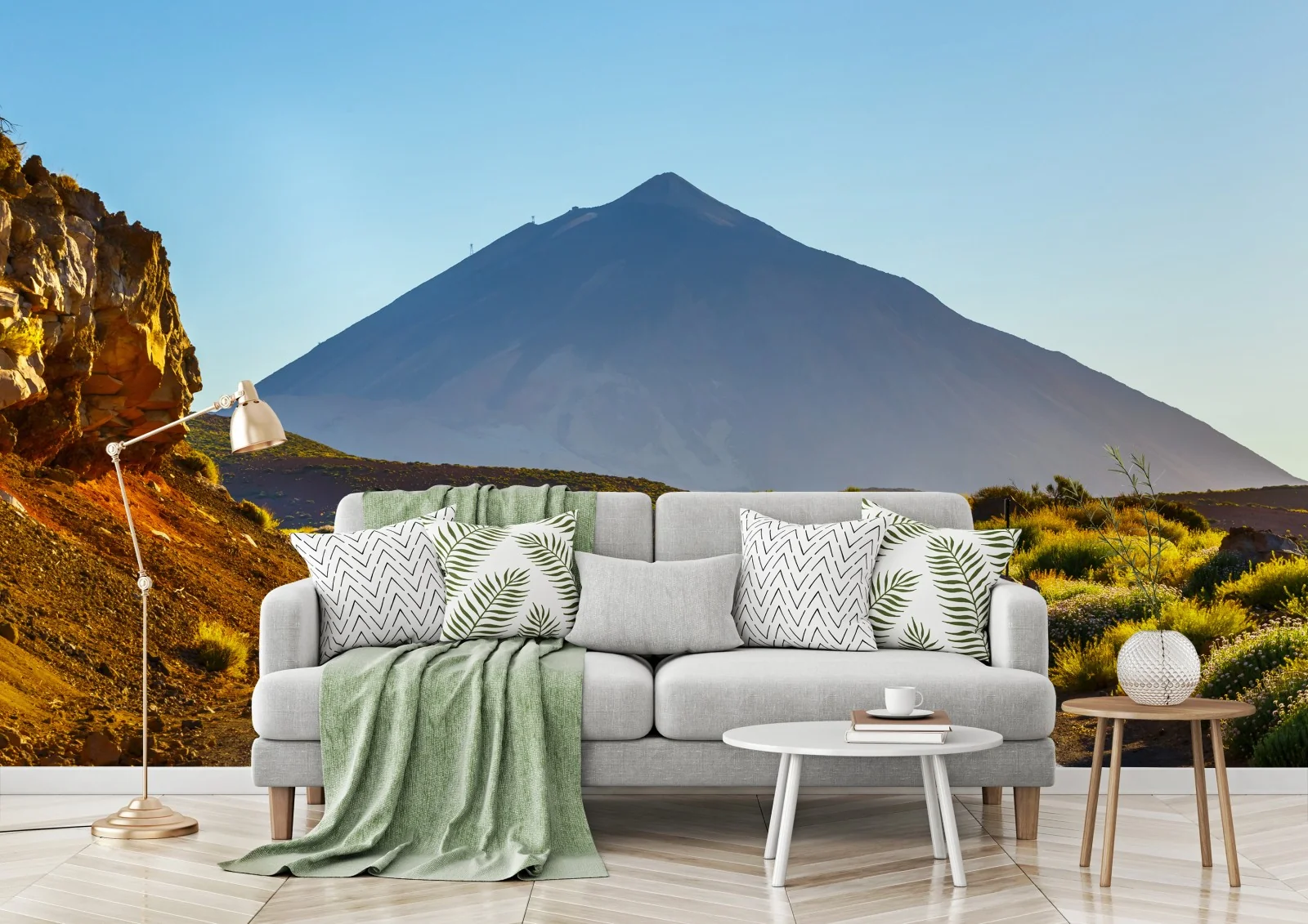 Fototapete Sonnenbeschienene bergstraße zum vulkan