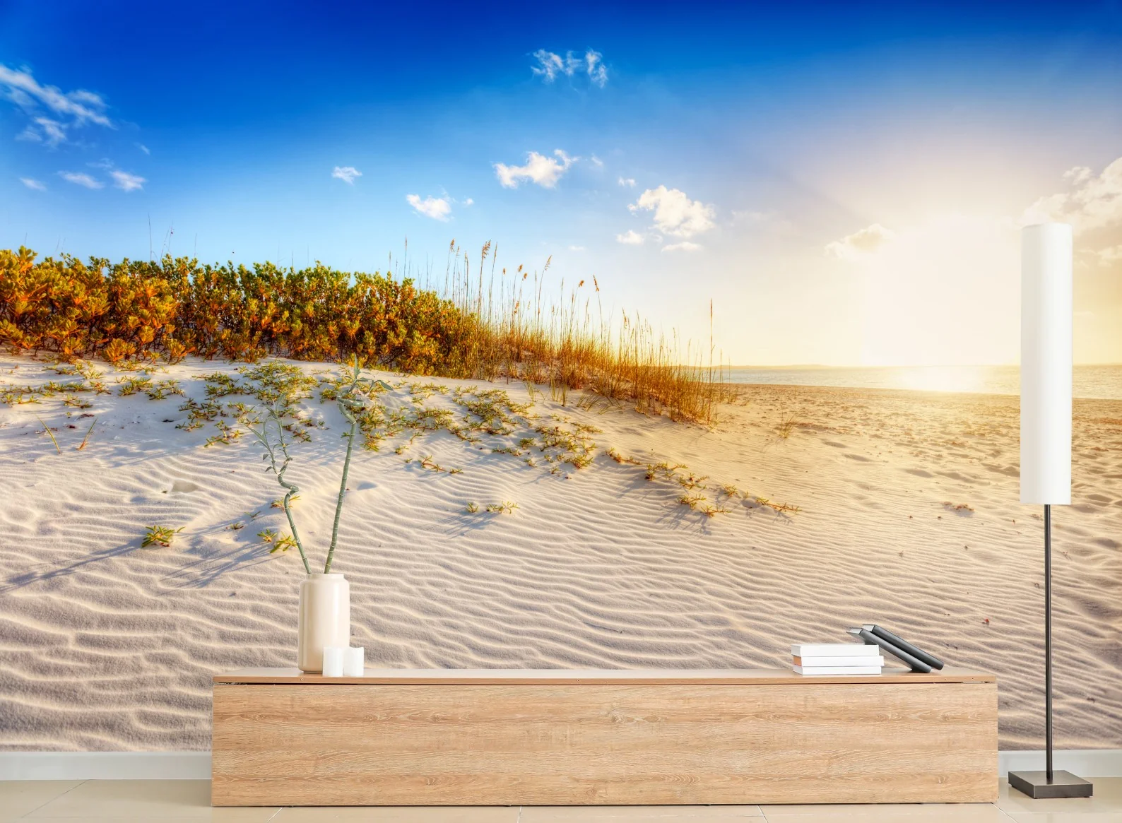 Fototapete Sonnenuntergang über sanddünen von Grace Bay