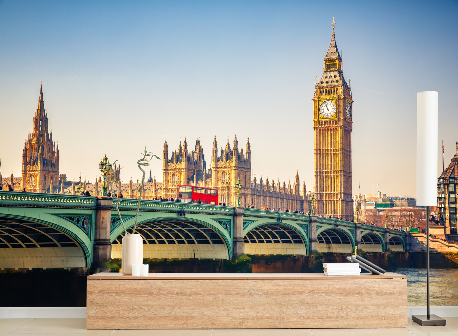 Fototapete Sonnige ansicht von Big Ben und Westminster Bridge, London