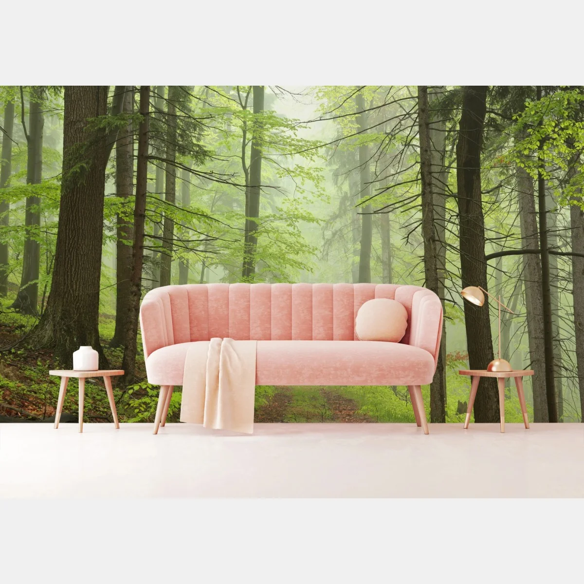 Fototapete Nebliger grüner waldpfad