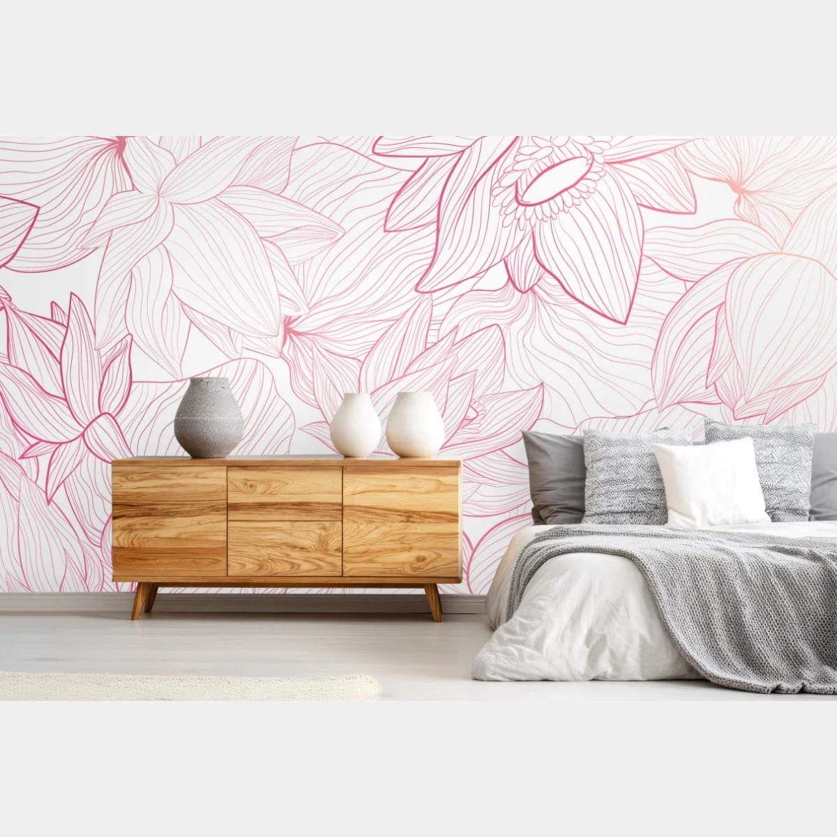 - minimalistisch, botanisch, blumen, rosa, muster, wanddekoration, linienzeichnung, ornamental, zart, floral