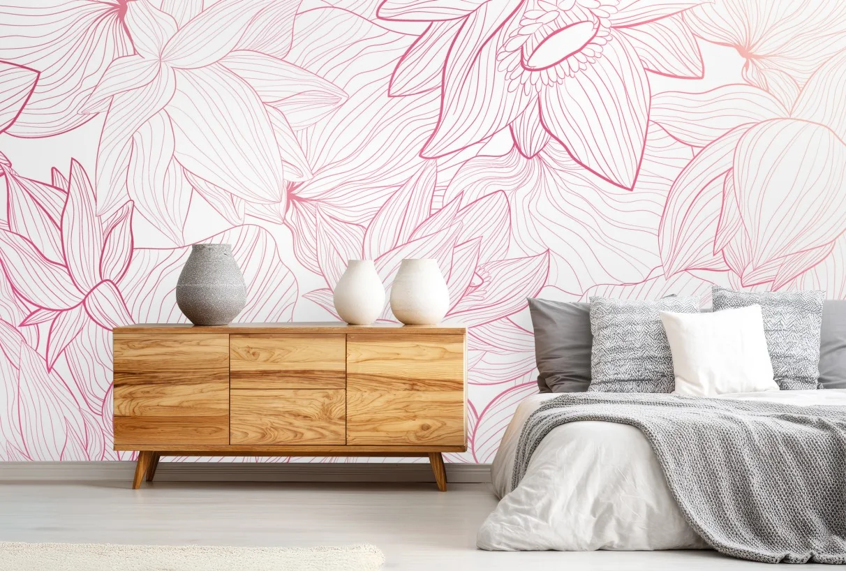 Fototapete Zartes rosa blumenlinienmuster