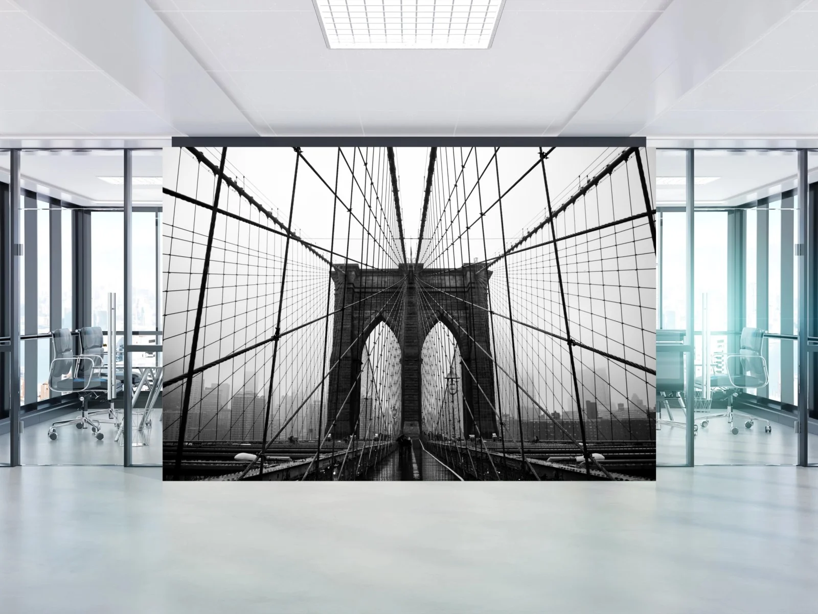 - stadt, architektur, brücke, schwarzweiß, ikonisch, städtisch, brooklyn bridge, linien, perspektive, industrial