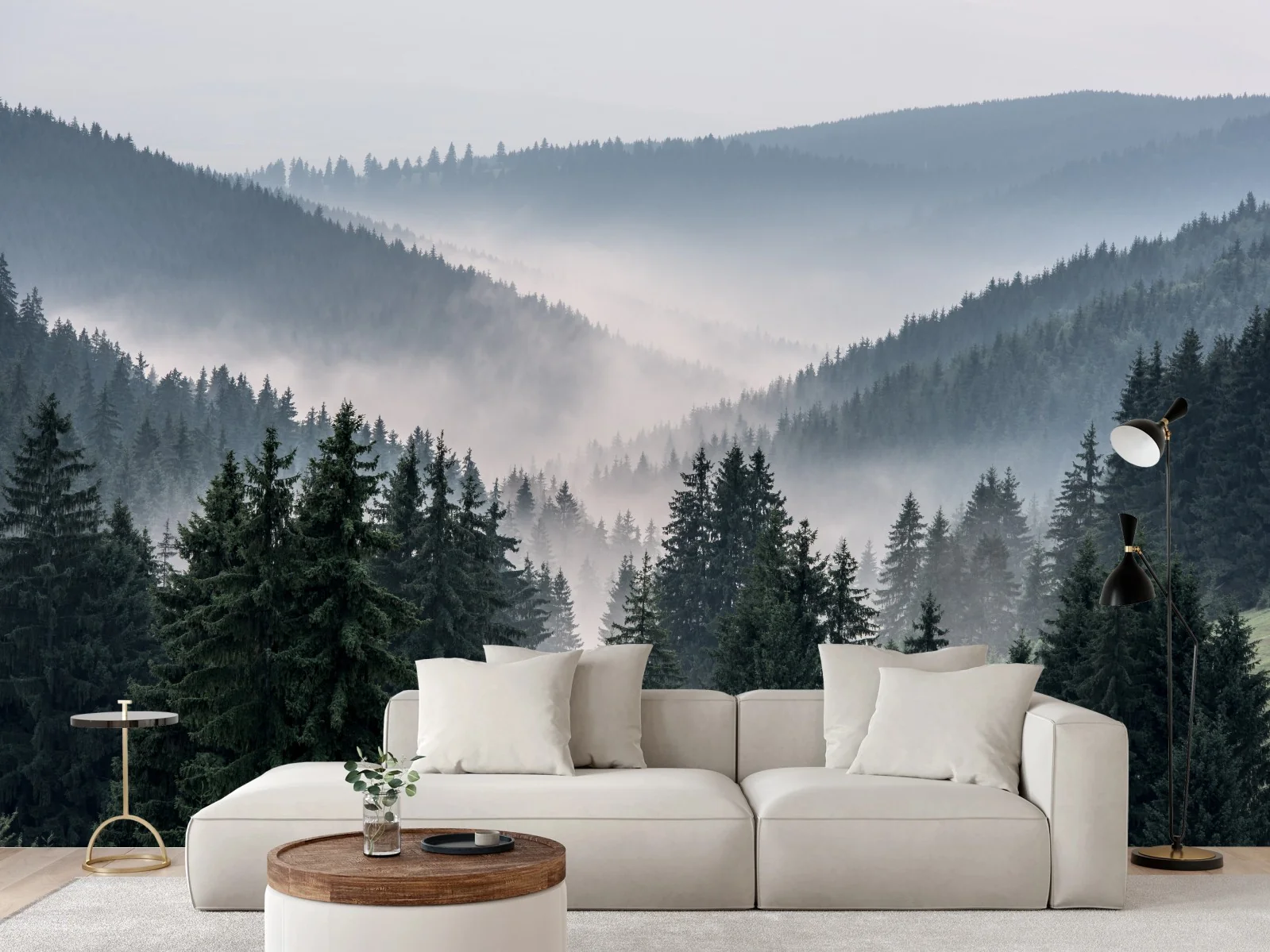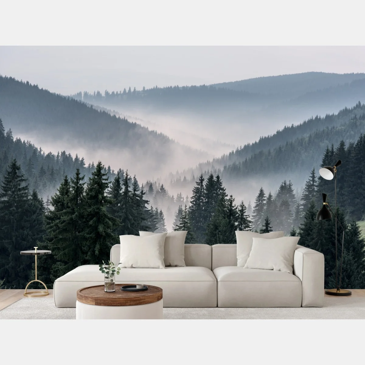 Fototapete Nebliger bergwald