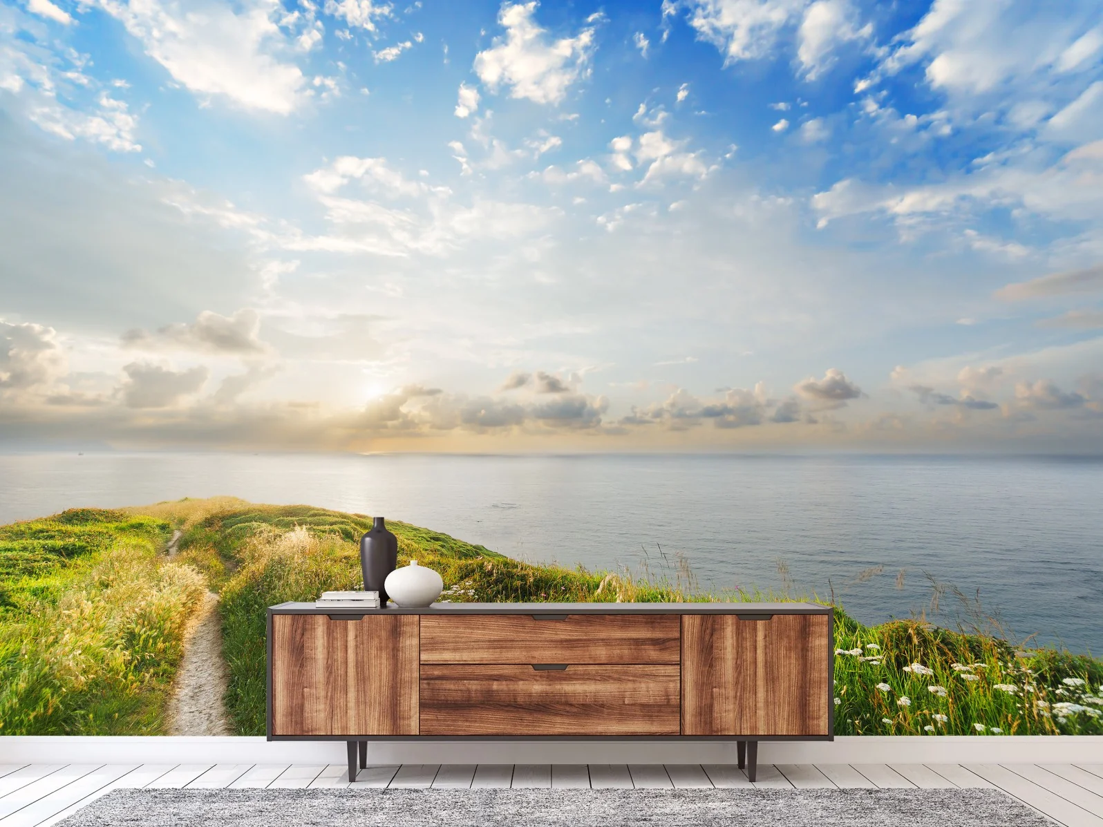 Fototapete Sonniger küstenpfad zum meer