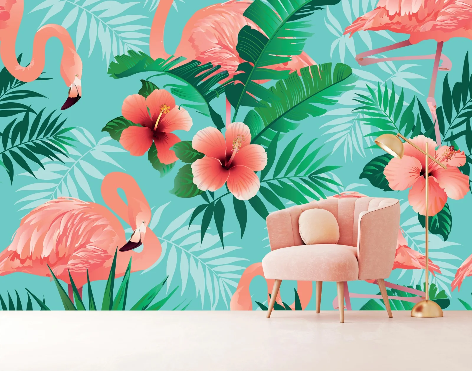 Fototapete Tropische flamingo-oase