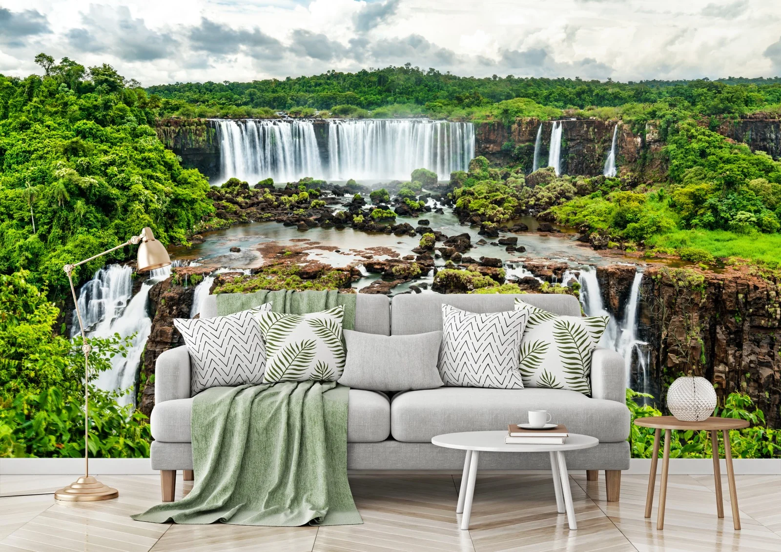 Fototapete Panorama des üppigen grünen wasserfalls