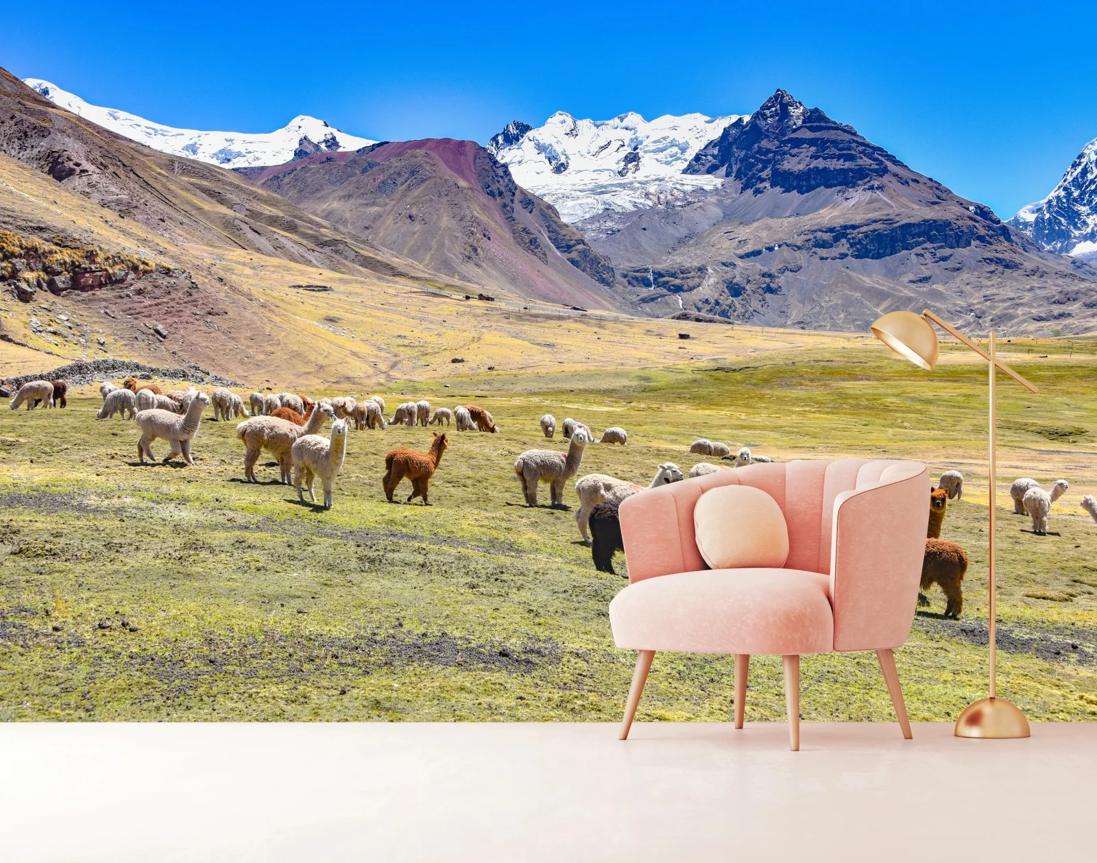 Fototapete Alpakas und lamas weiden bei Mt Ausangate, Cusco