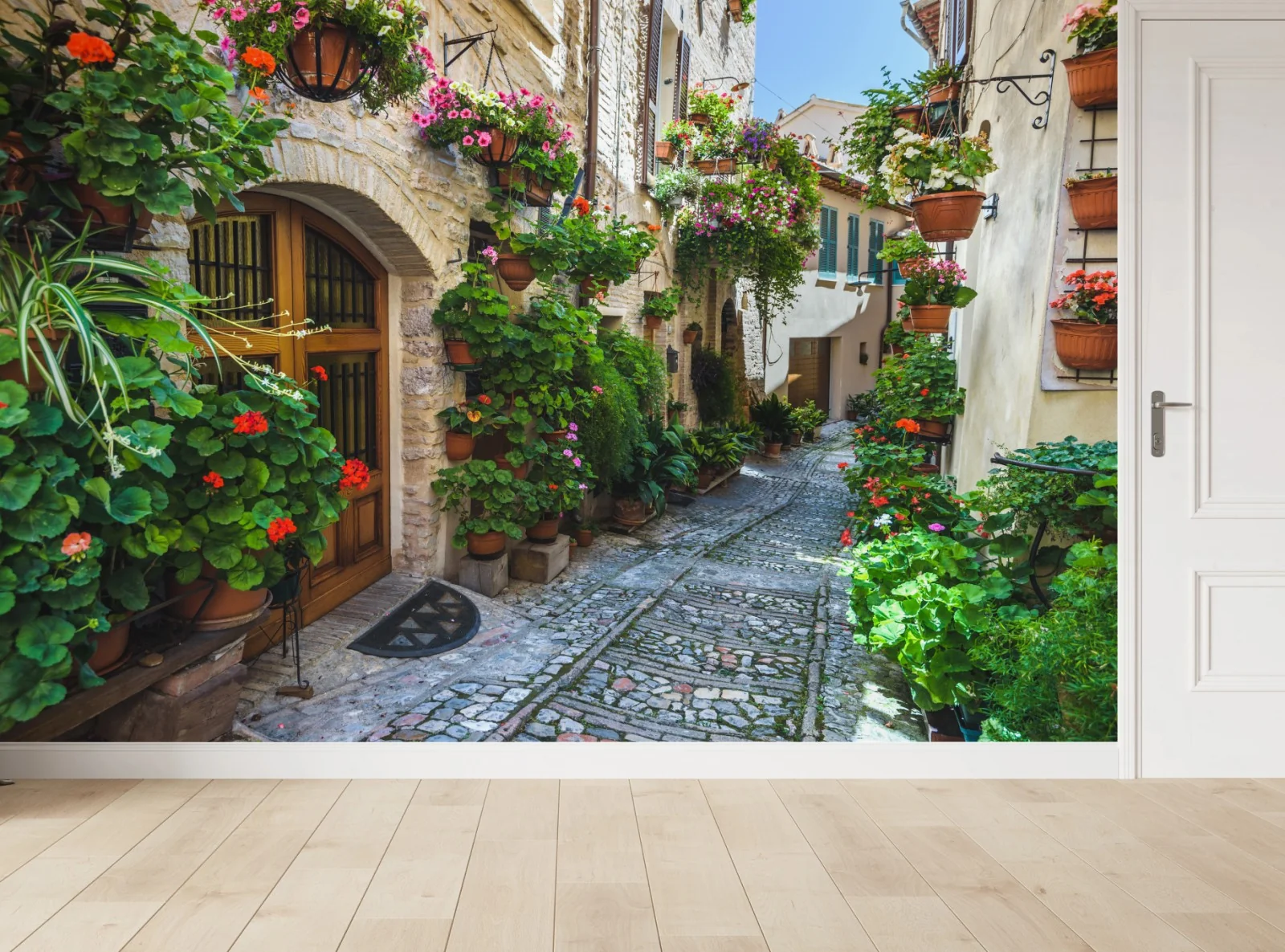 Fototapete Charmante gasse in Spello, Italien