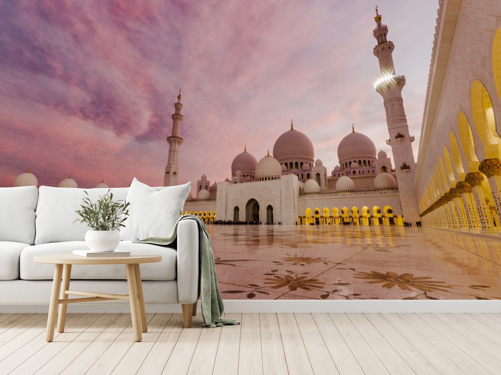 Fototapete Ruhiger sonnenuntergang an der moschee Sheikh Zayed