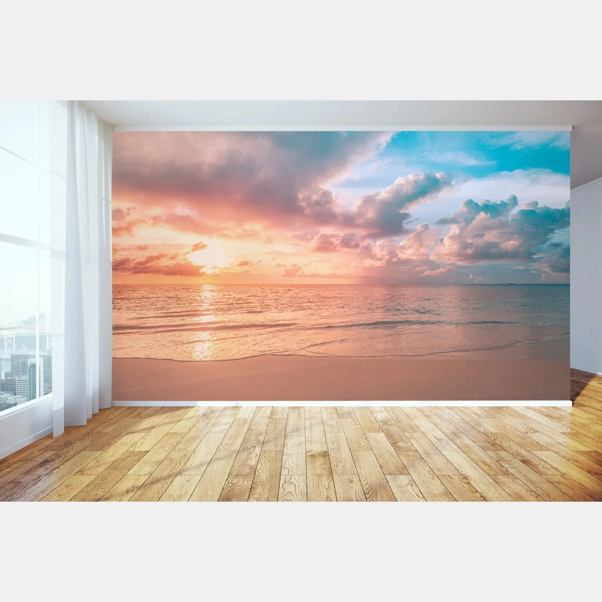 Fototapete Sanfter pastellsonnenuntergang am strand