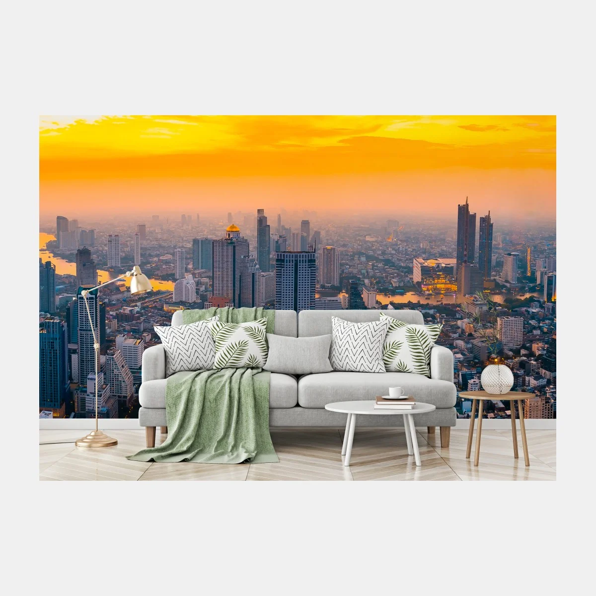 Fototapete Goldene stadtsilhouette bei sonnenuntergang