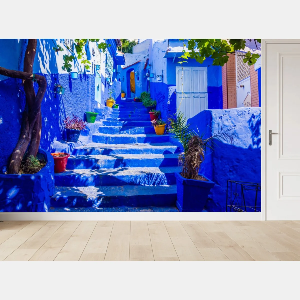 Fototapete Blaue treppen in Chefchaouen, Marokko