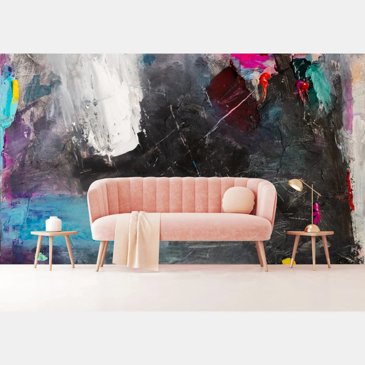 Verwandeln Sie Ihren Raum mit dieser mutigen abstrakten Komposition mit reichhaltiger Textur und lebendigen Farbakzenten für einen modernen, dynamischen Blickfang.MehrWeniger