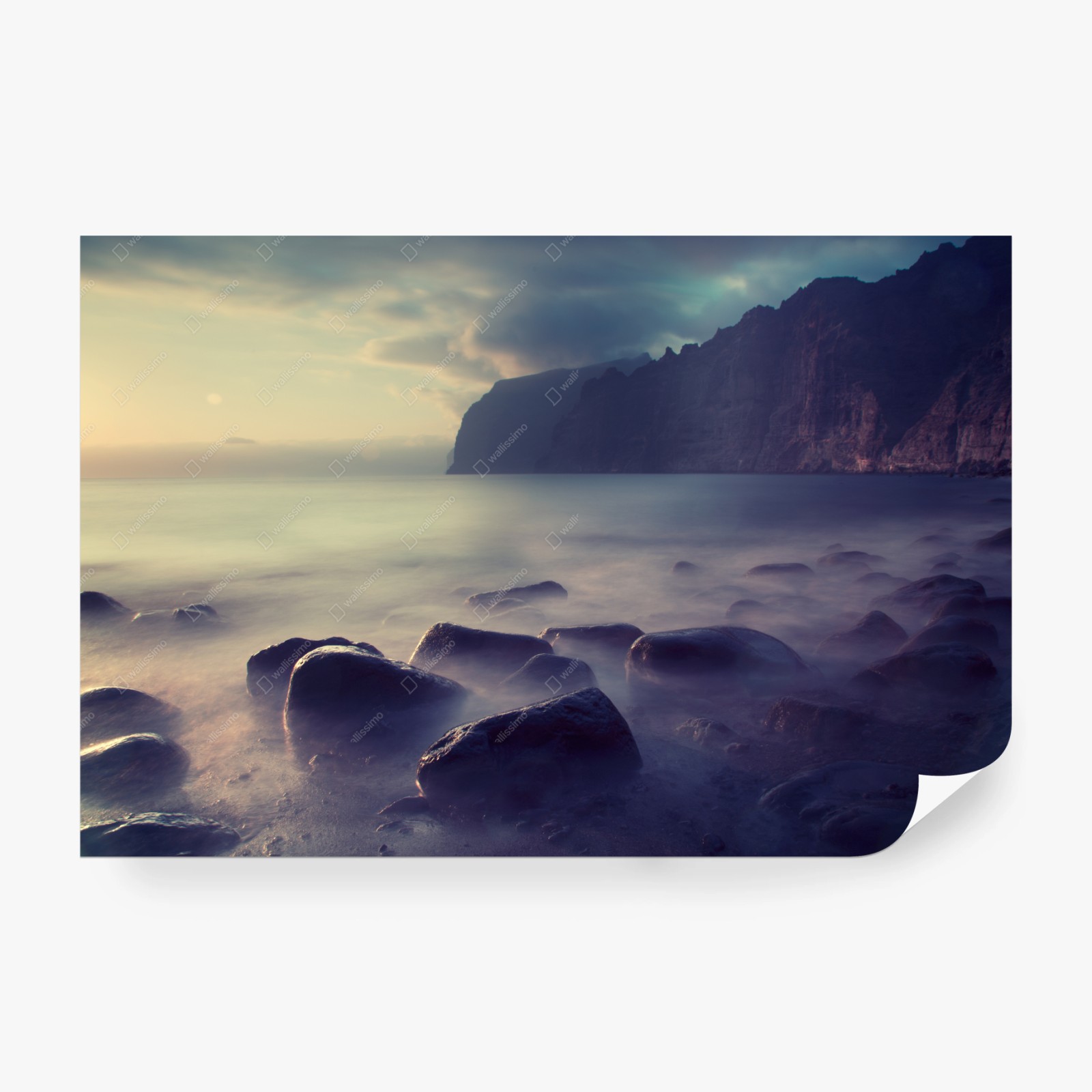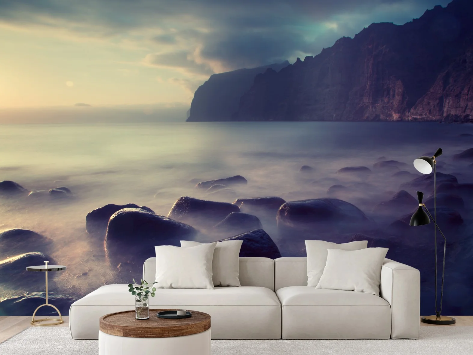 - meer, nebel, dämmerung, küste, strand, klippen, meereslandschaft, langzeitbelichtung, steine, beruhigend