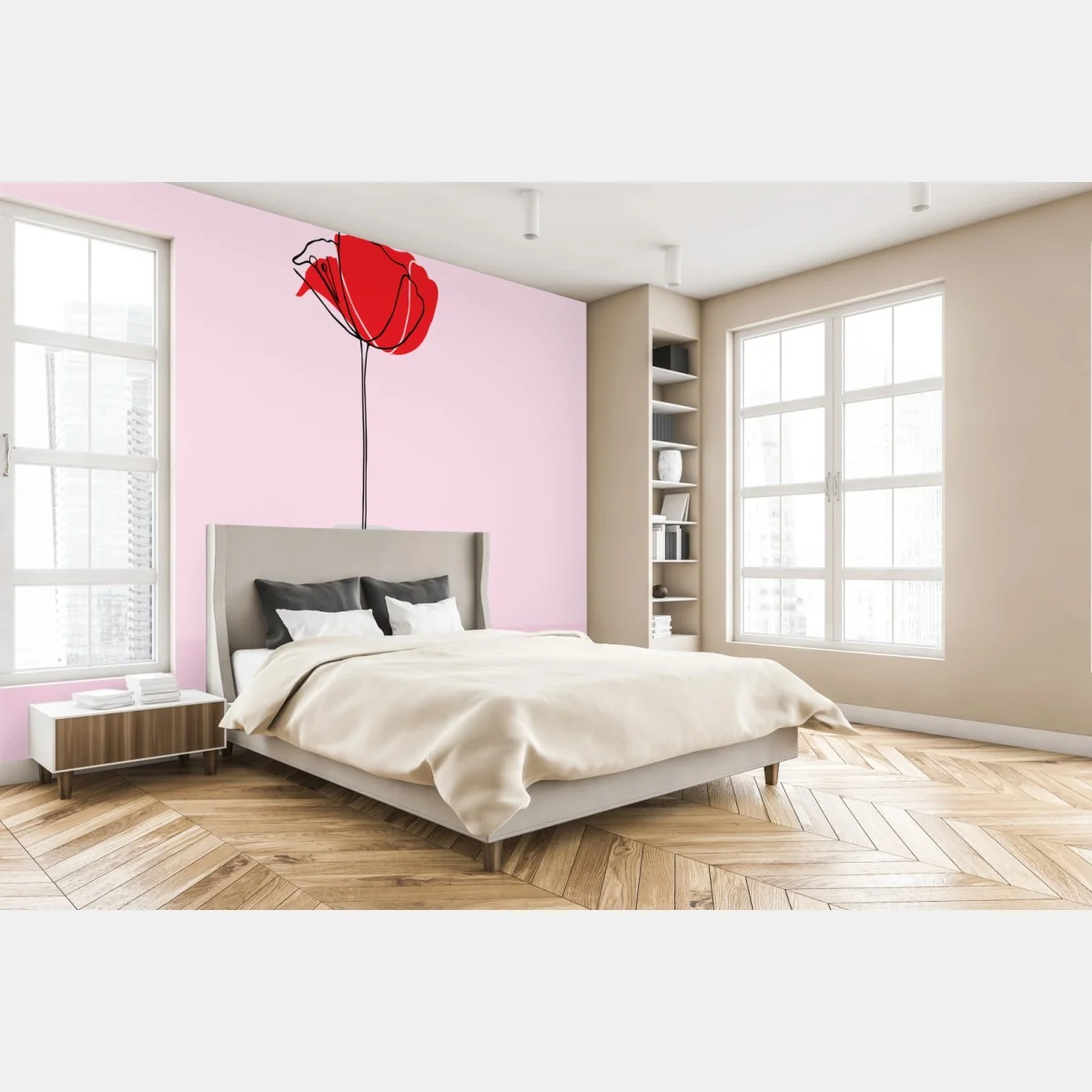 - minimalistisch, modern, botanisch, wanddeko, skandinavisch, blume, rosa hintergrund, floral, vase, roter mohn