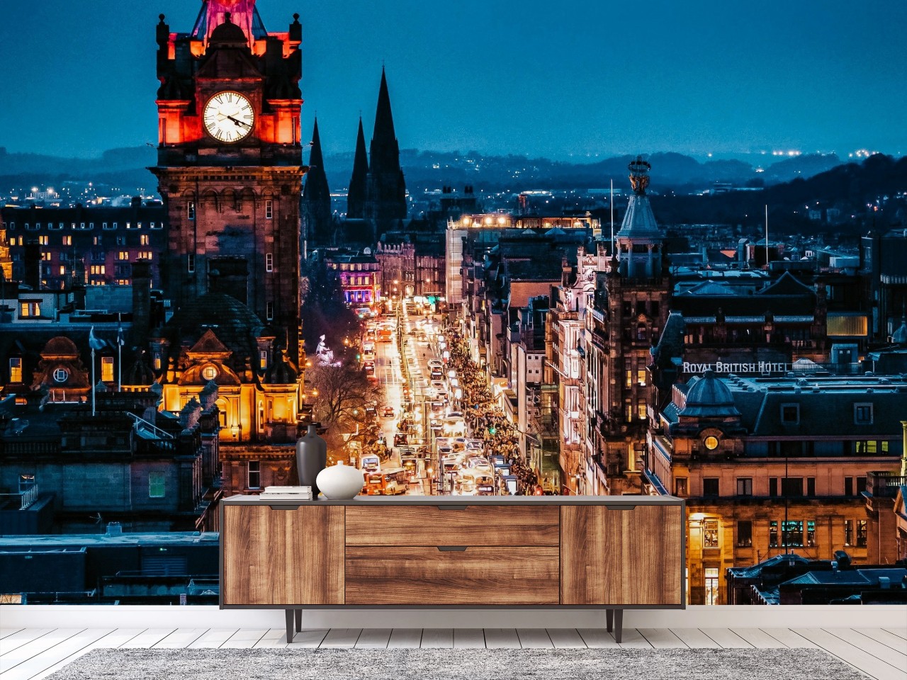 Fototapete Edinburgh nächtliche stadtszene mit uhrturm