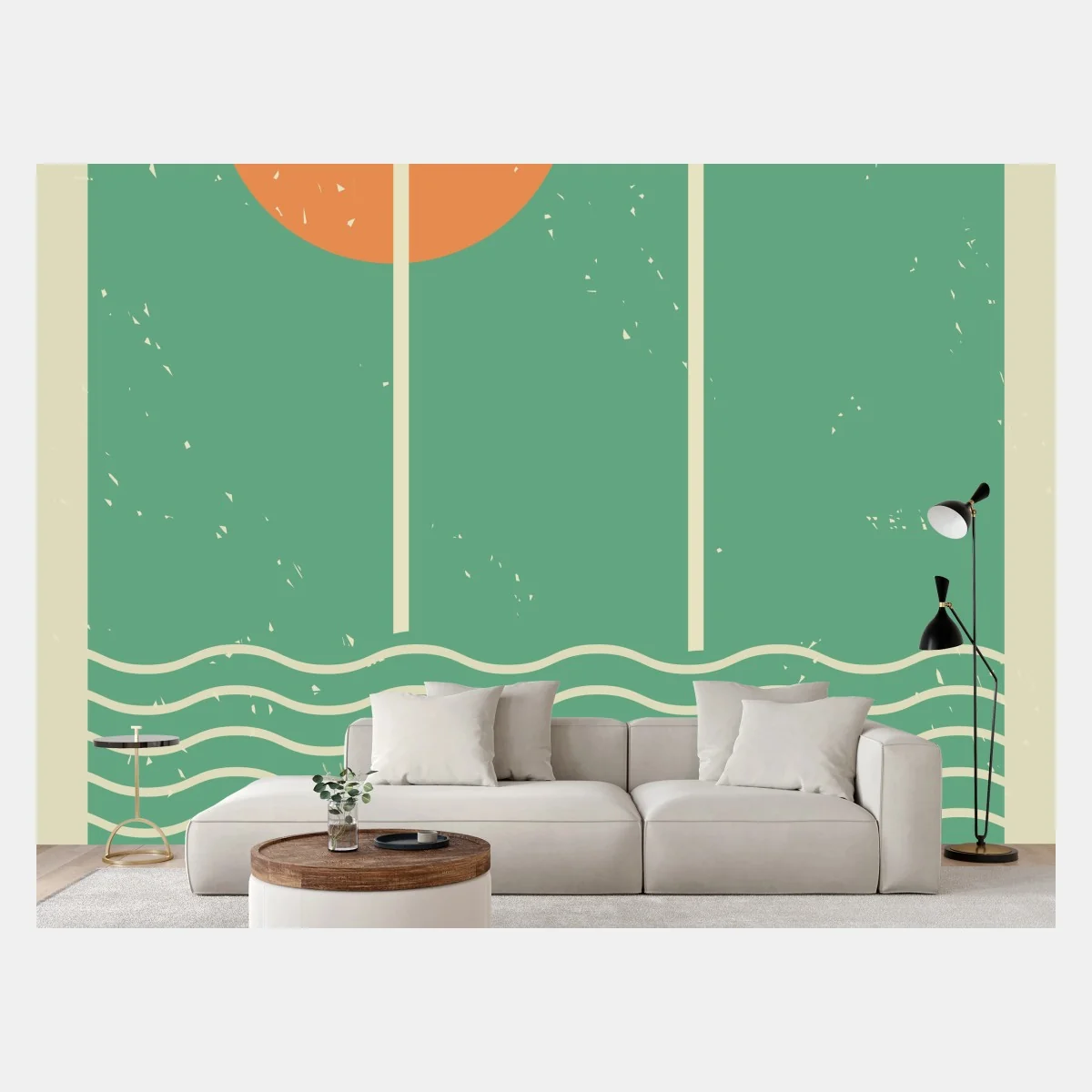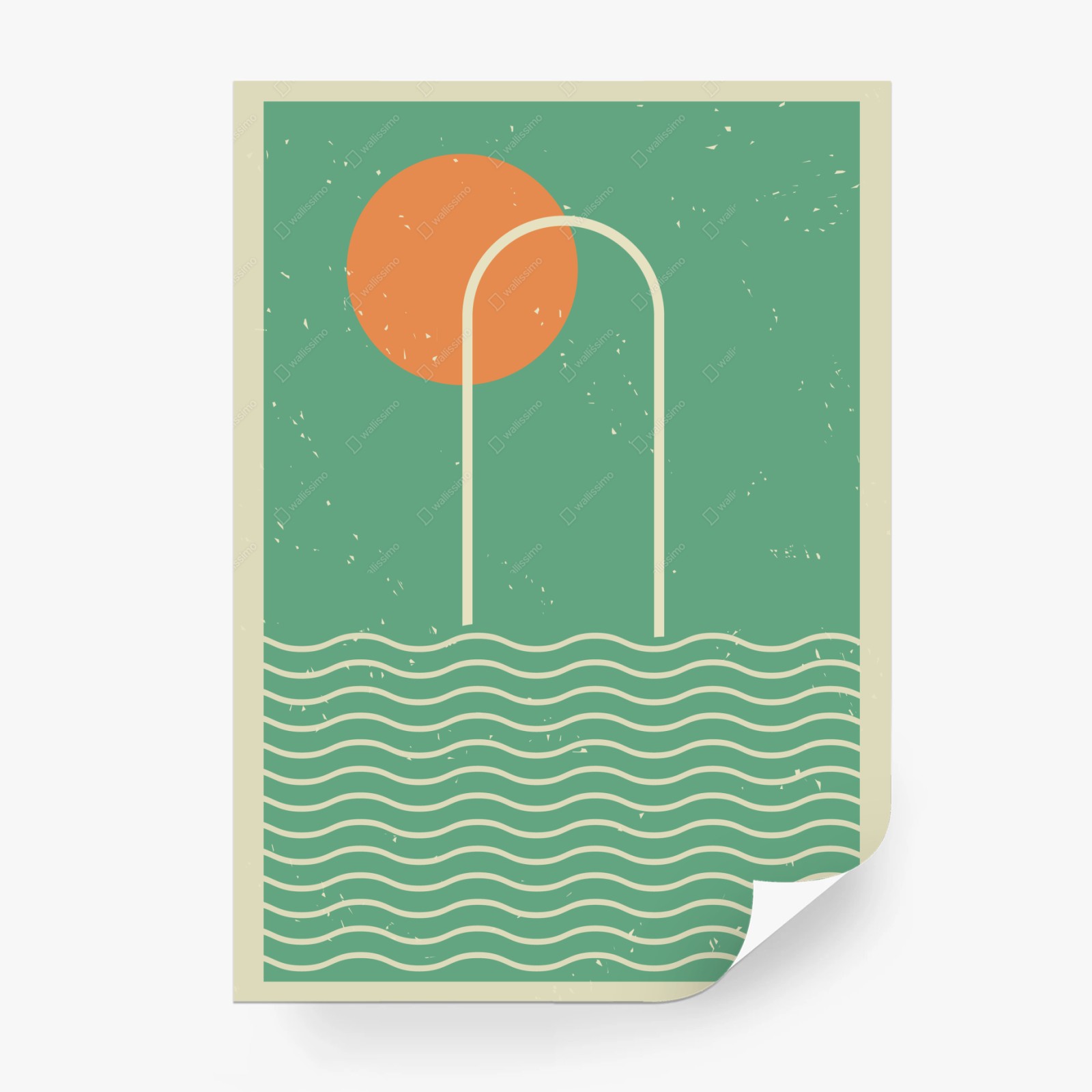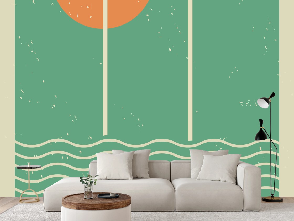 - türkis, minimalistisch, meer, wellen, pastell, geometrisch, retro, bogen, sonne, orange
