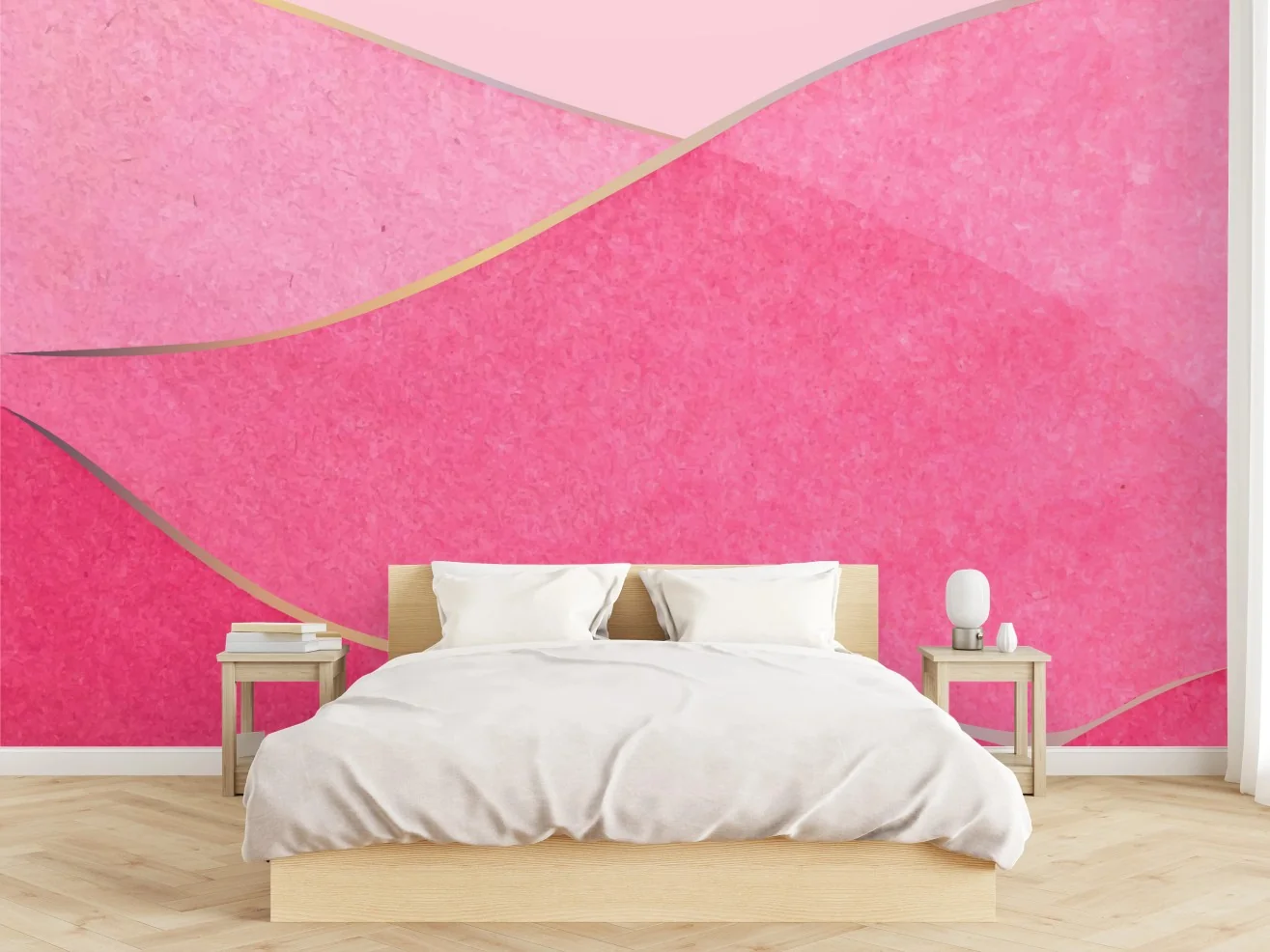 - minimalistisch, modern, abstrakt, wellen, aquarell, pastell, rosa, struktur, wanddekoration, goldene akzente