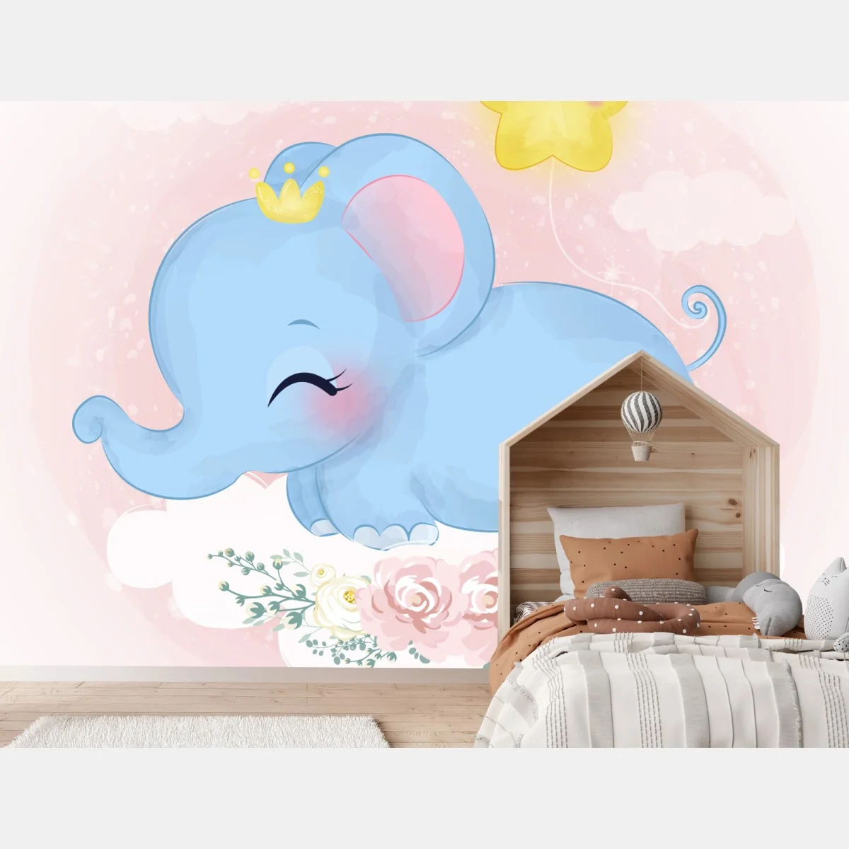Fototapete Schlafender blauer elefant fürs kinderzimmer