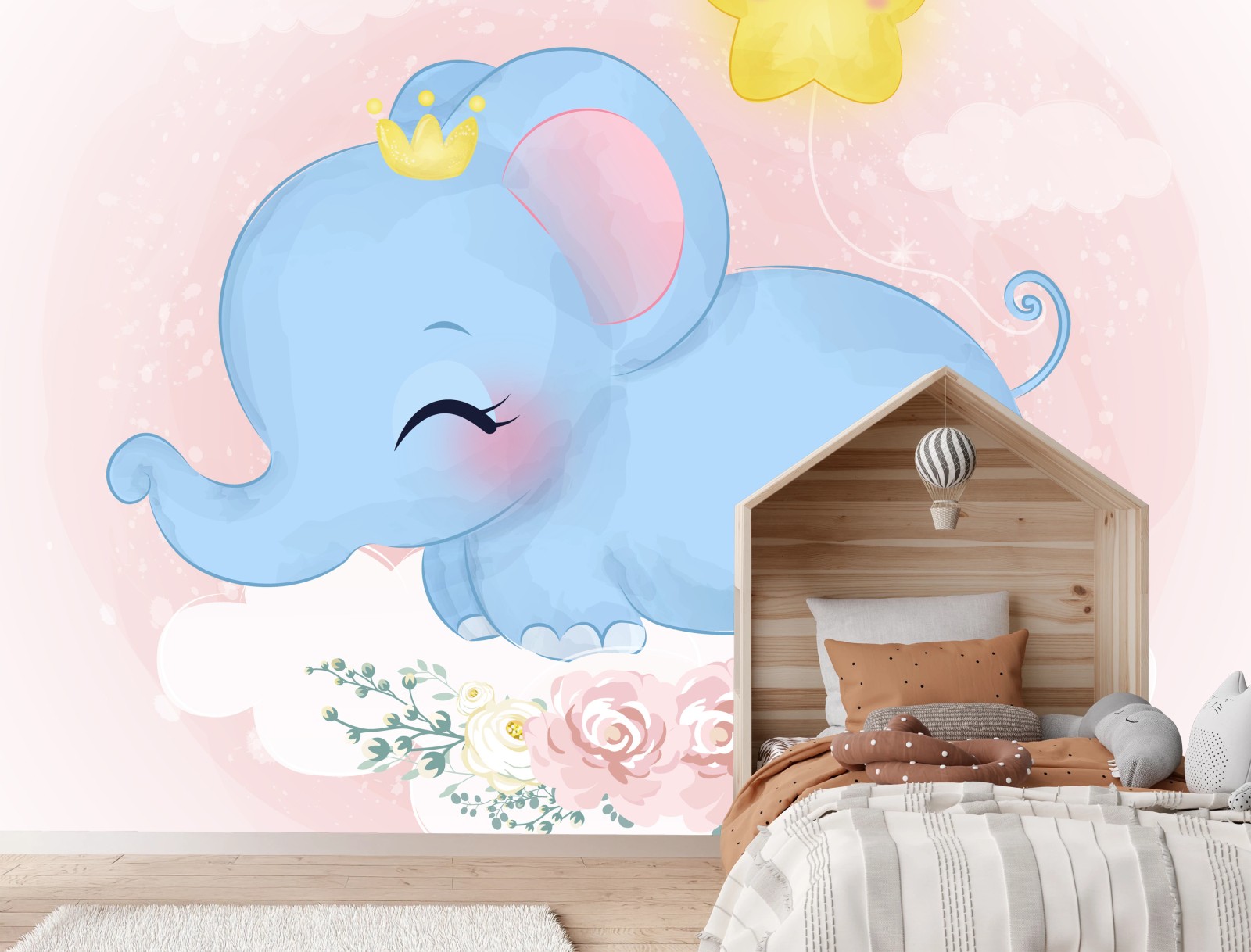 - illustration, kinderzimmer, sterne, blumen, pastell, traumhaft, elefant, süß, baby, wolke