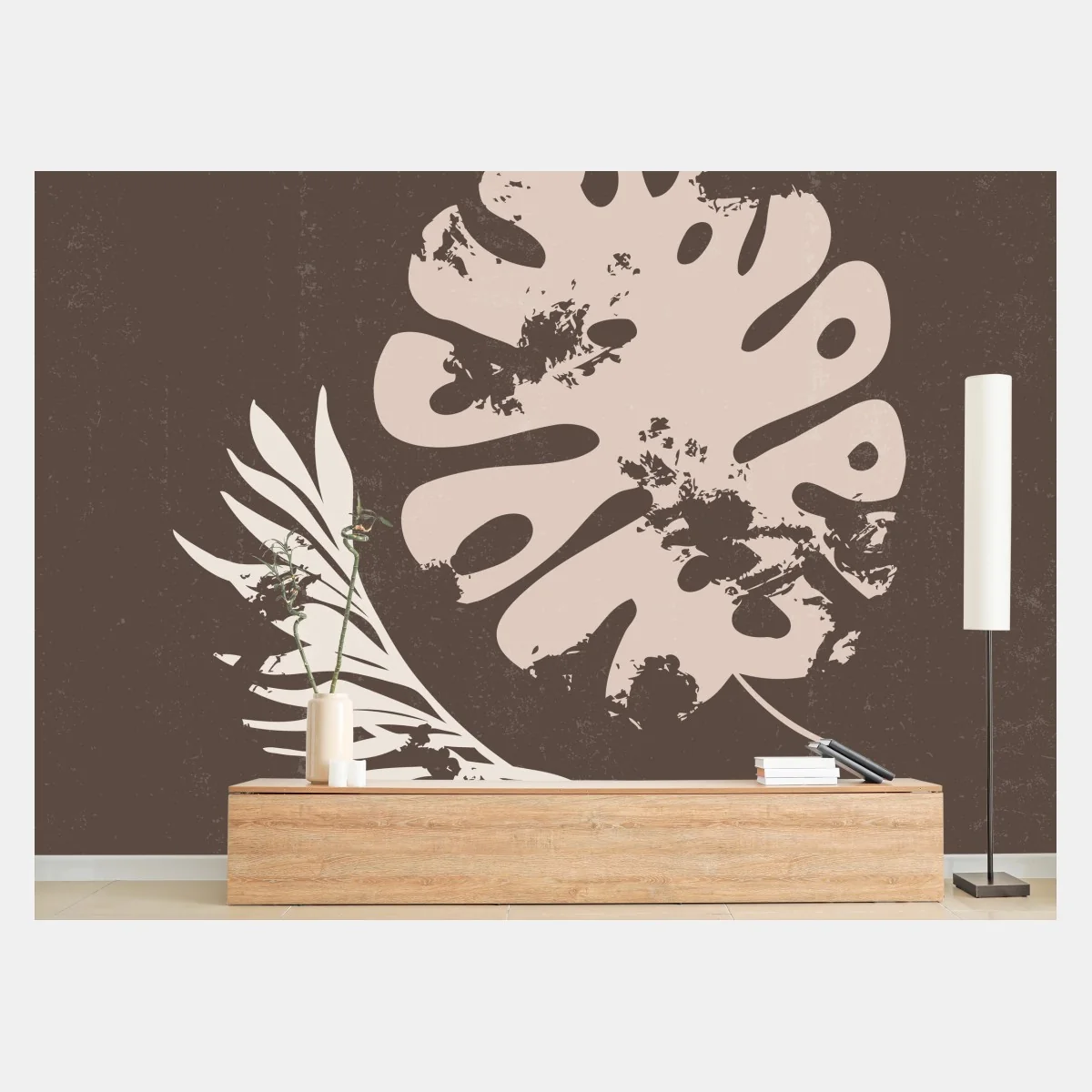 Fototapete Monstera und farn boho botanische grafik