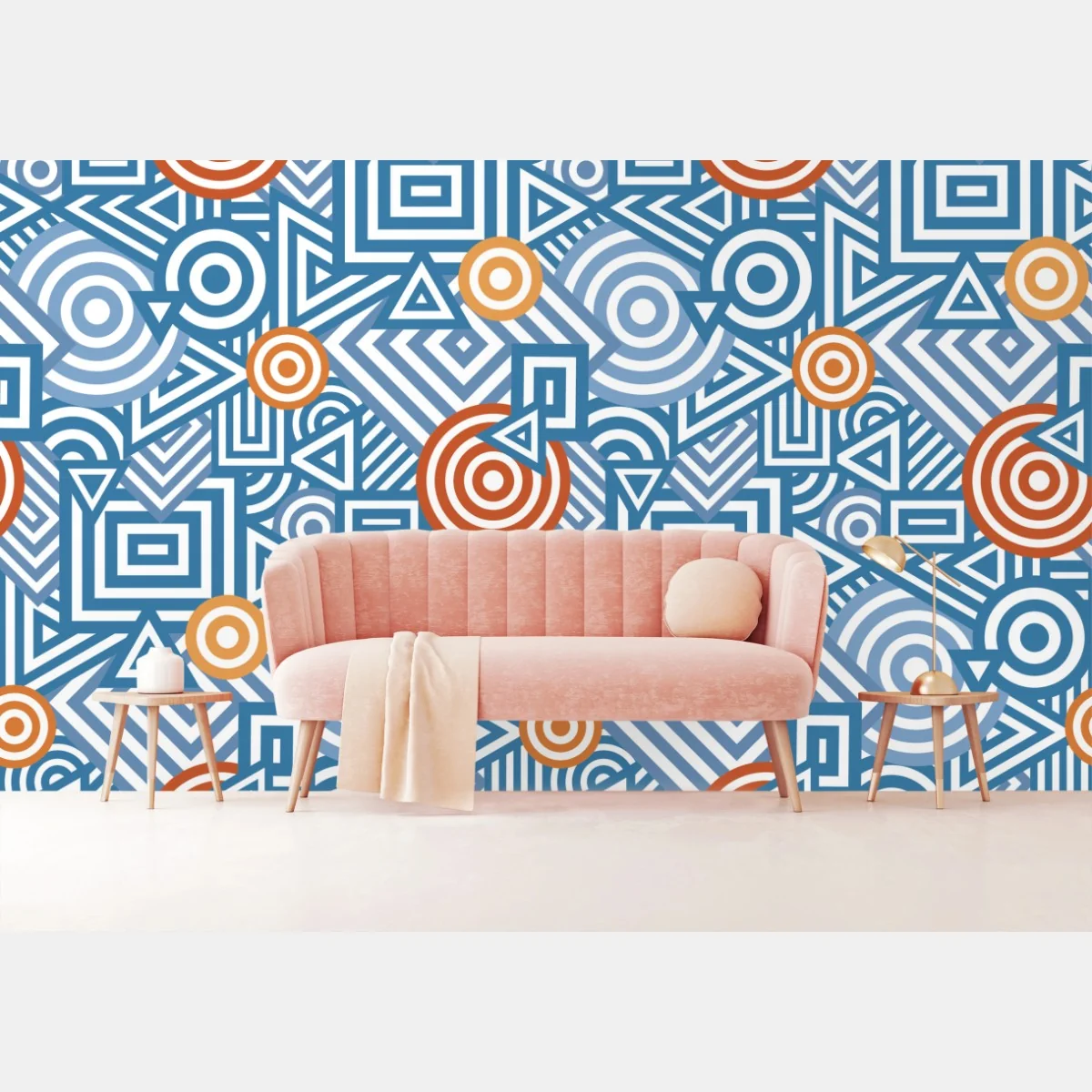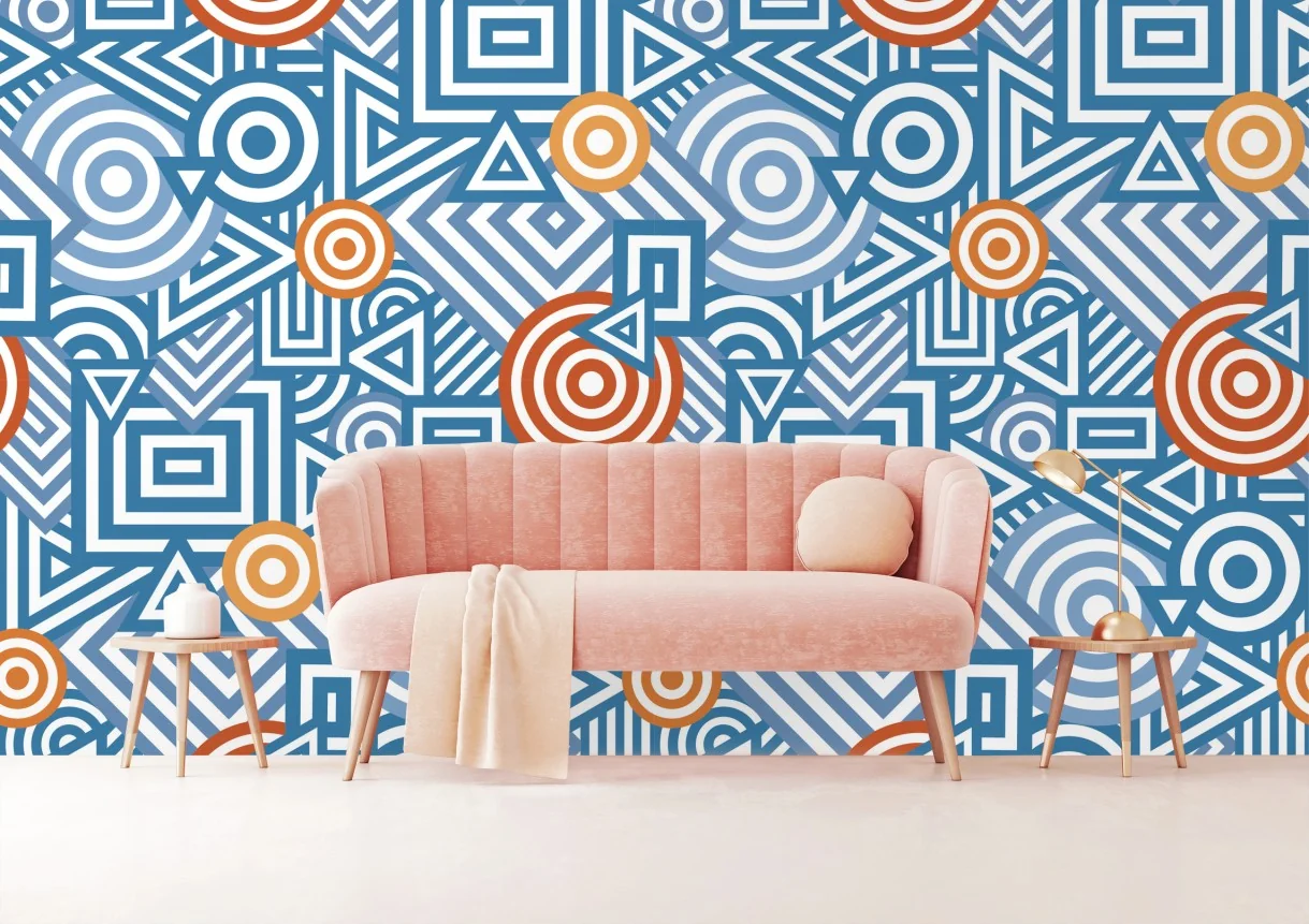 Fototapete Blaues geometrisches muster mit orangefarbenen akzenten