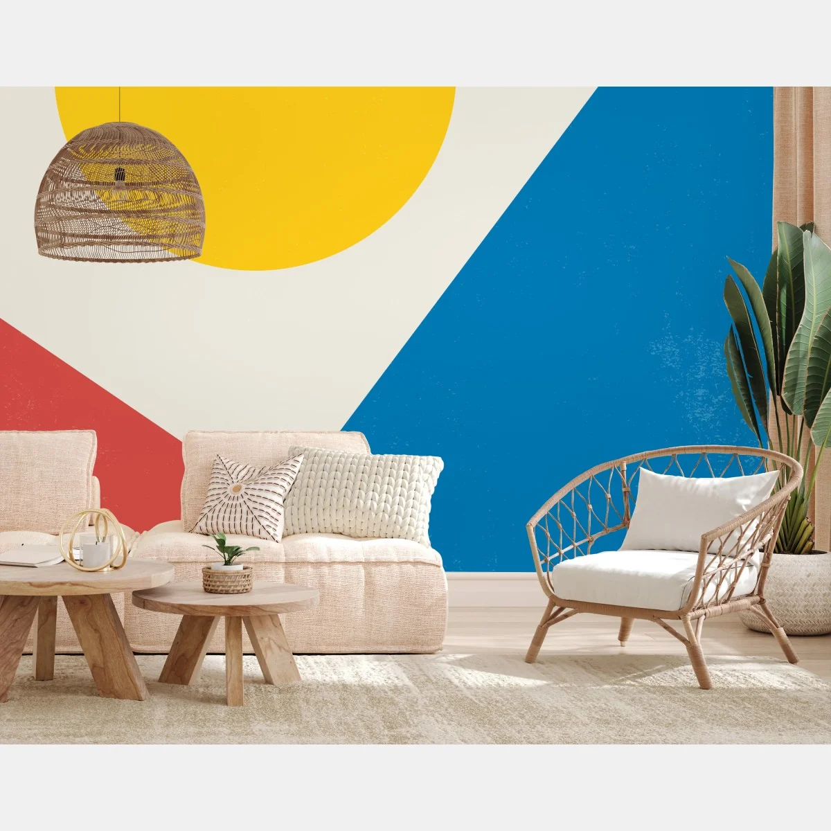 - bunt, minimalistisch, modern, textur, abstrakt, vintage, geometrisch, retro, gelbe sonne, blaues dreieck