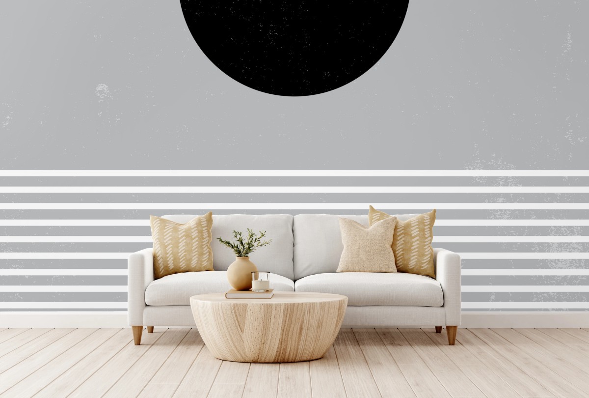 - minimalistisch, modern, poster, abstrakt, monochrom, geometrisch, wandkunst, kreis, streifen, grunge-textur