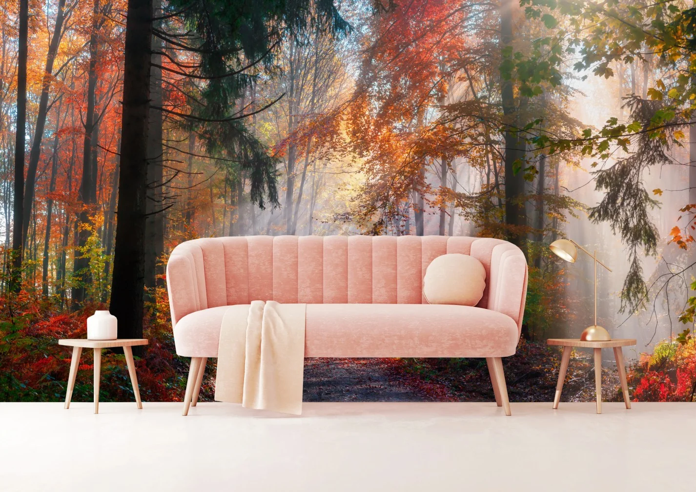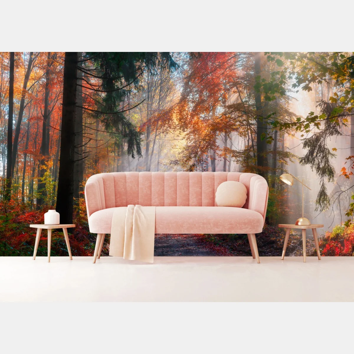 Fototapete Magischer herbstwald im sonnenlicht