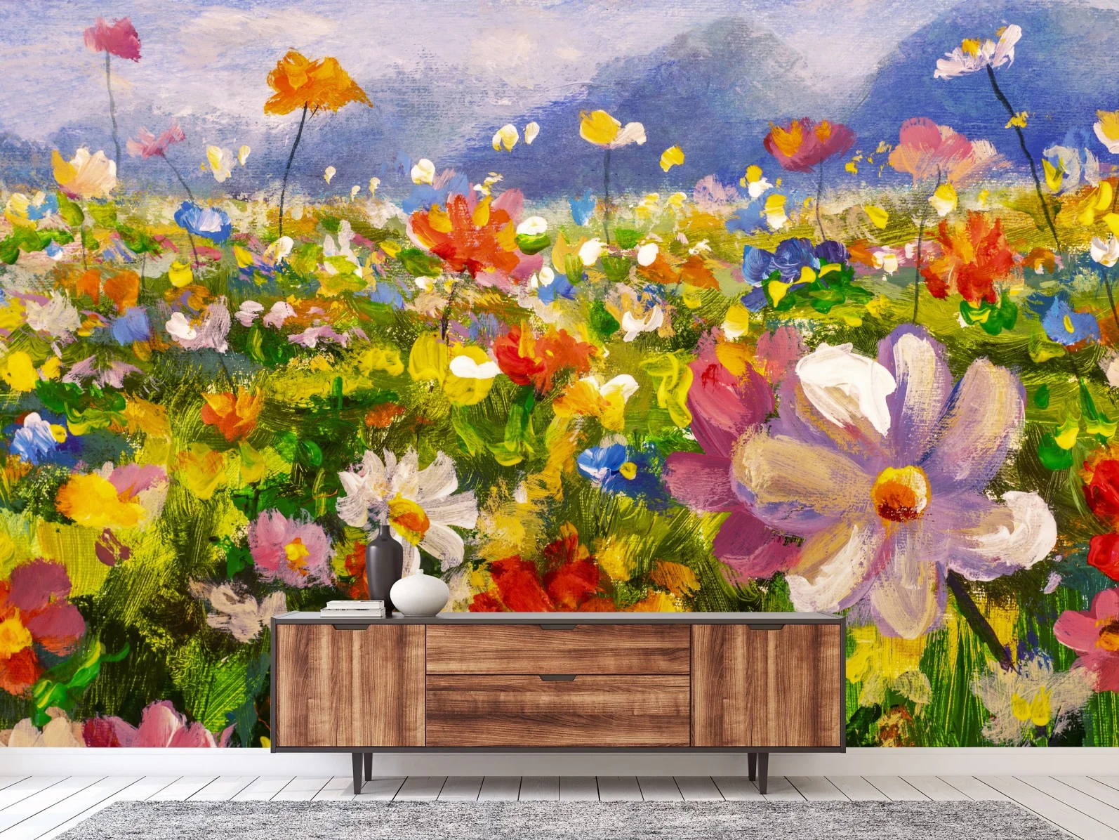 Fototapete Lebhafte wildblumenwiese
