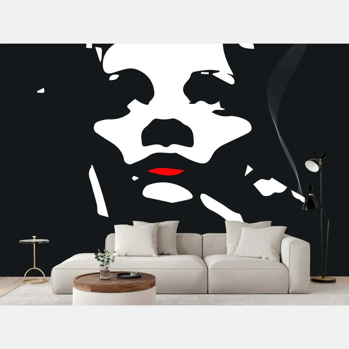 Fototapete Mysteriöses silhouette-porträt mit roten lippen