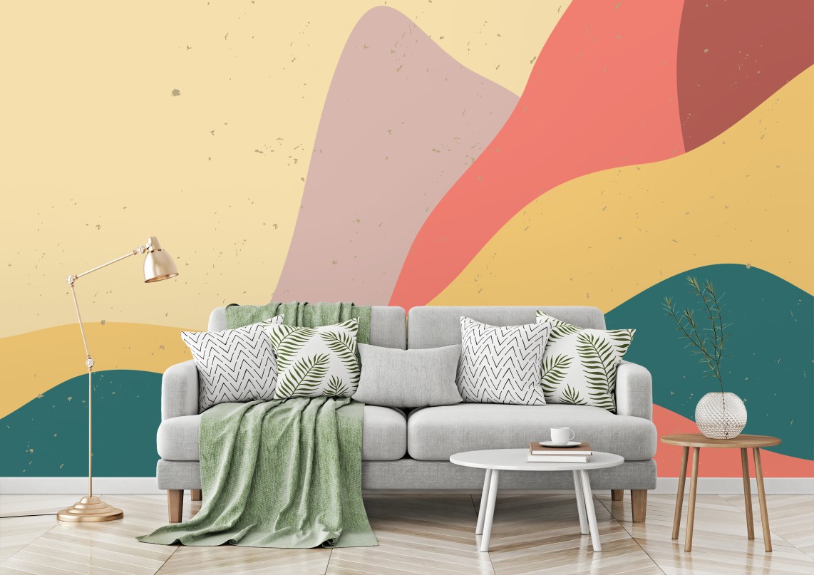- minimalistisch, modern, landschaft, berge, abstrakt, wellen, pastell, geometrisch, japanisch, asiatisch