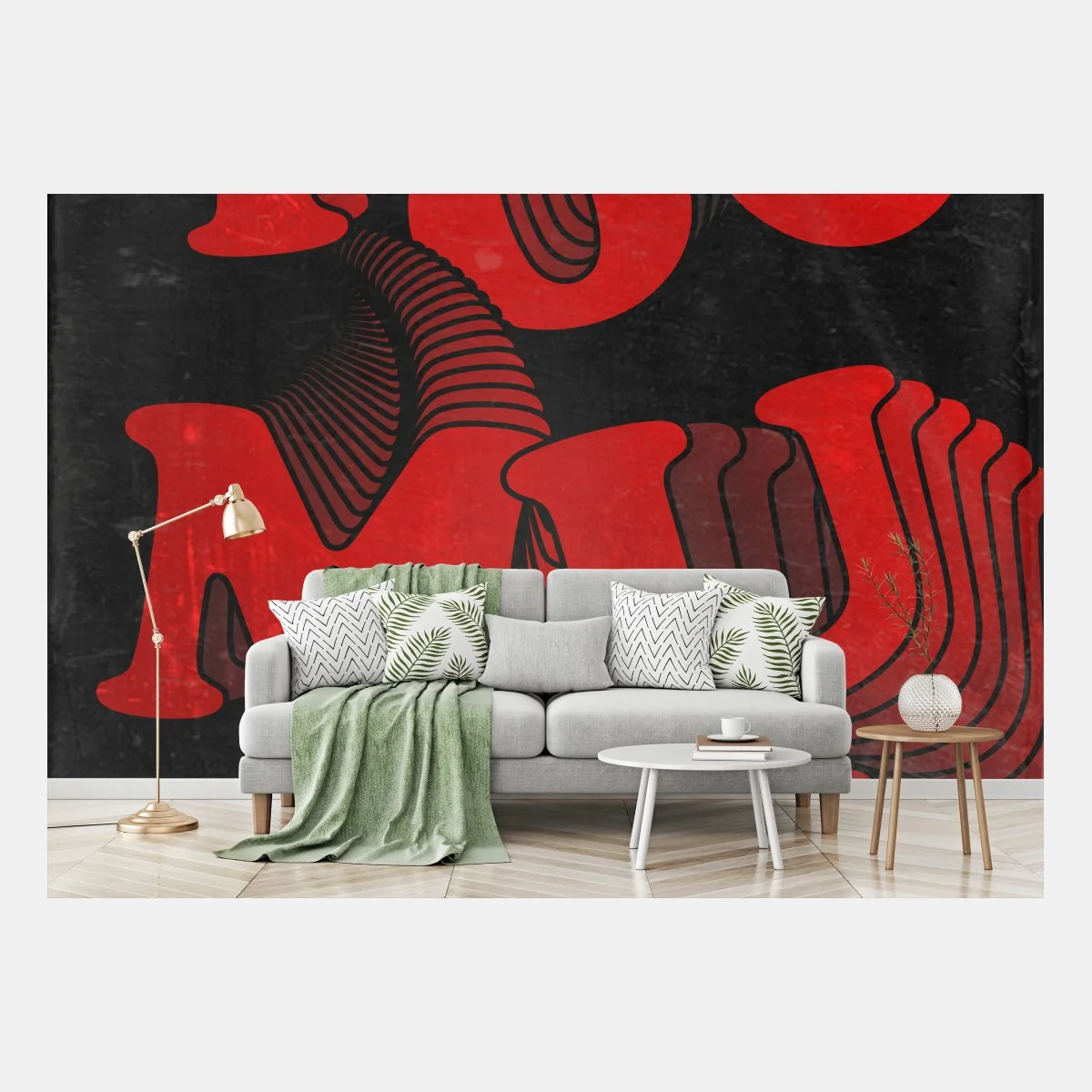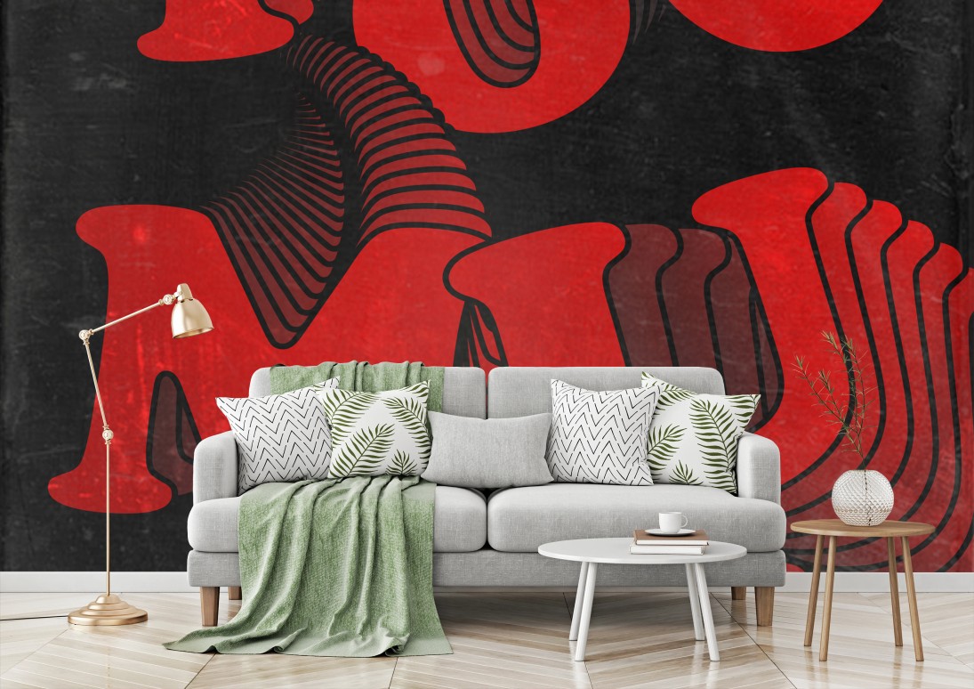 Setzen Sie ein starkes Statement mit diesem retro-inspirierten rot-schwarzen typografischen Design, ideal als Blickfang in modernen Räumen.MehrWeniger