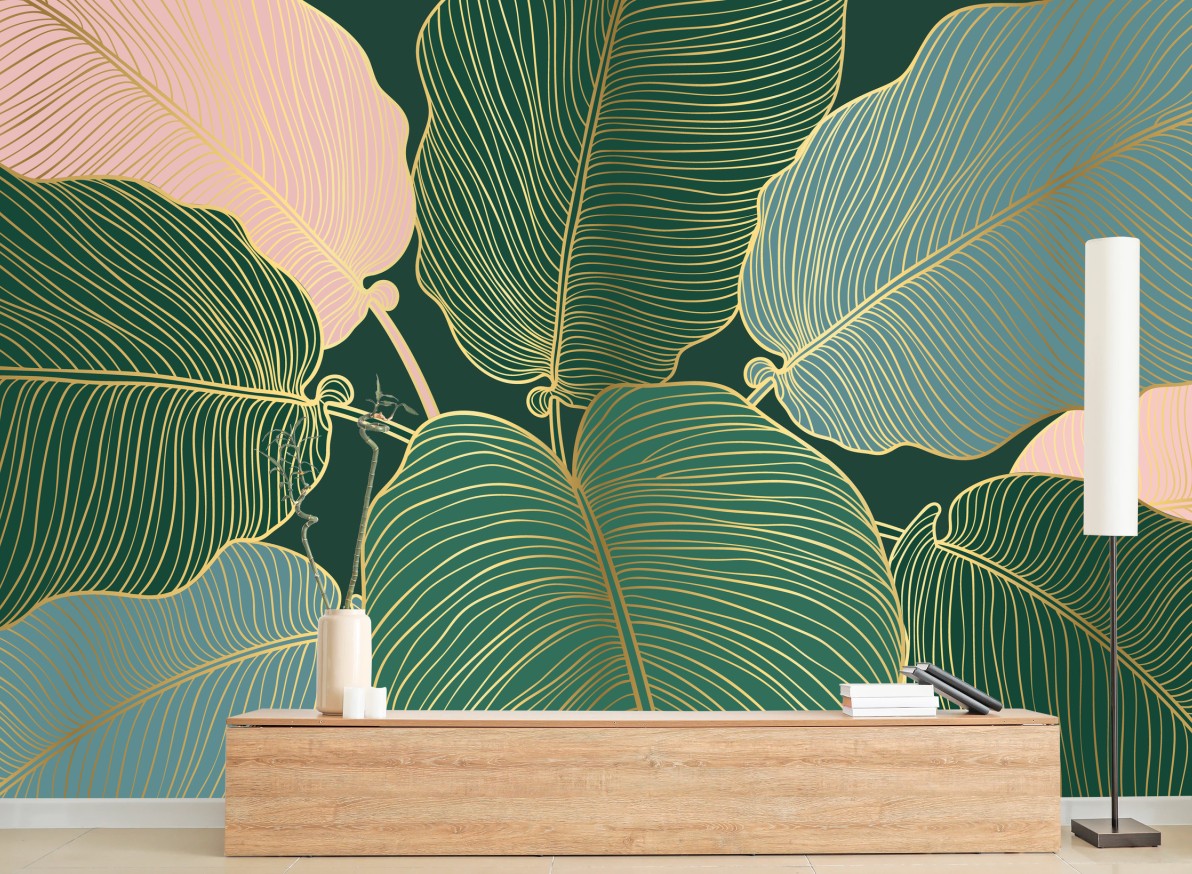 Fototapete Luxuriöse botanische goldblatt-illustration