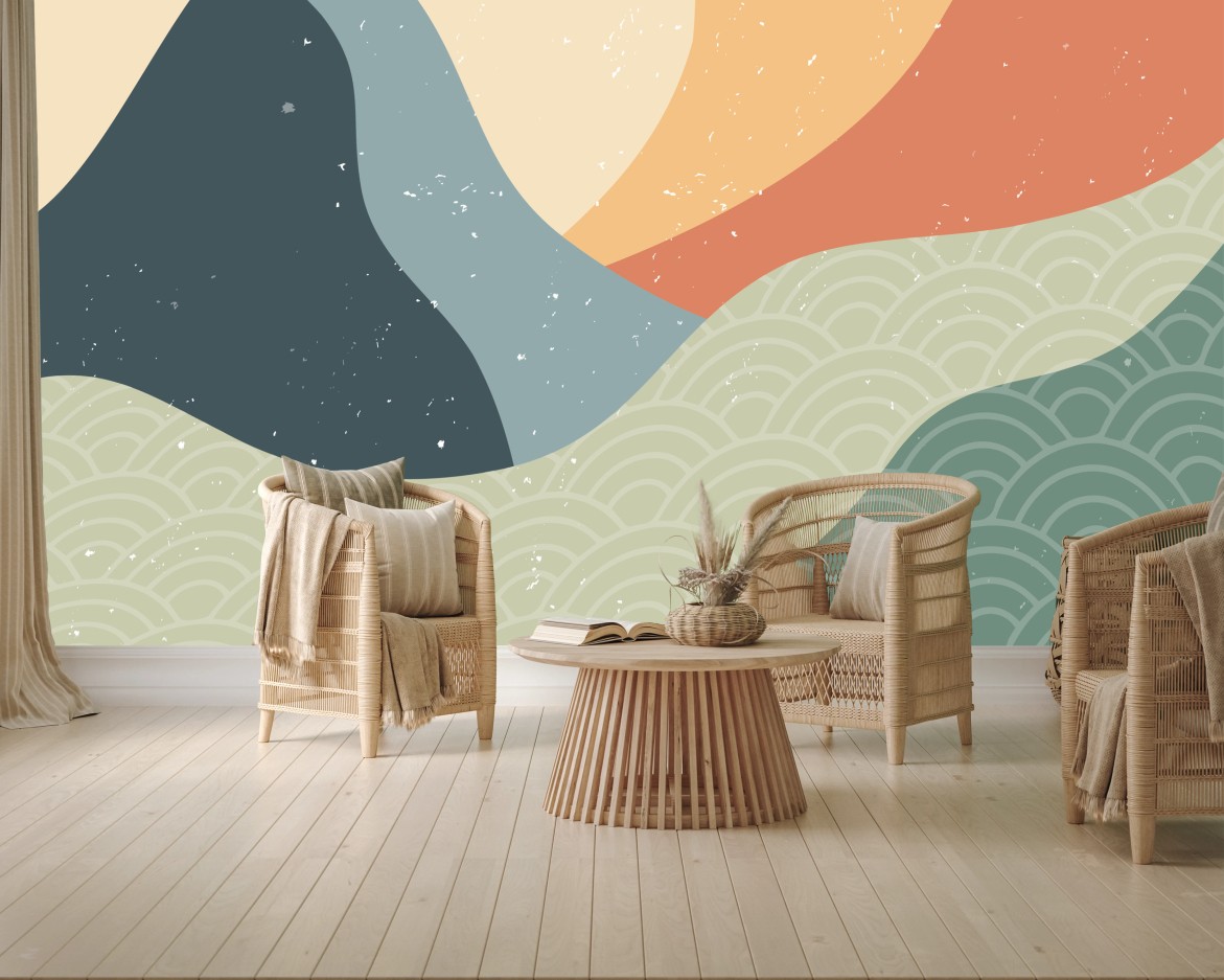 - minimalistisch, landschaft, ruhig, berge, abstrakt, pastell, geometrisch, wandkunst, japanisch, asiatisch