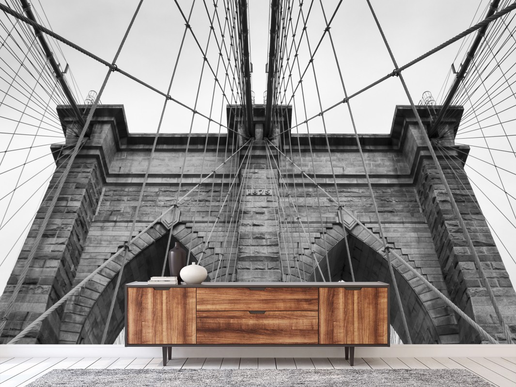 Fototapete Perspektive der Brooklyn Bridge in monochrom