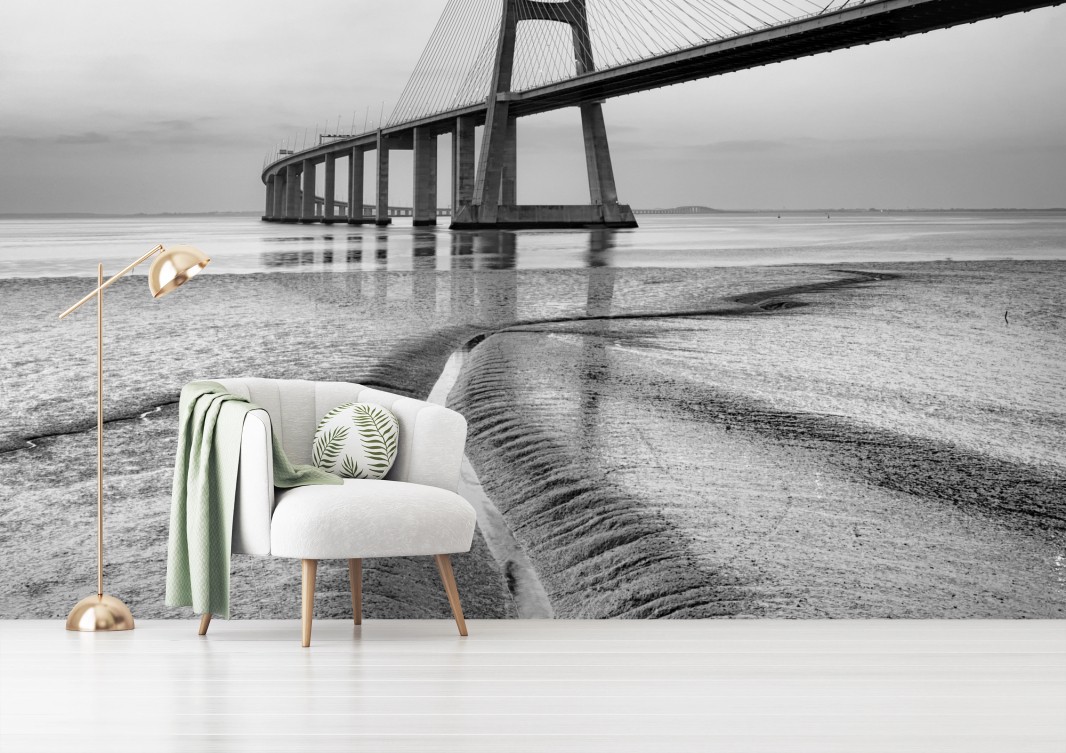 Fototapete Minimalistische seilbrücke in monochrom