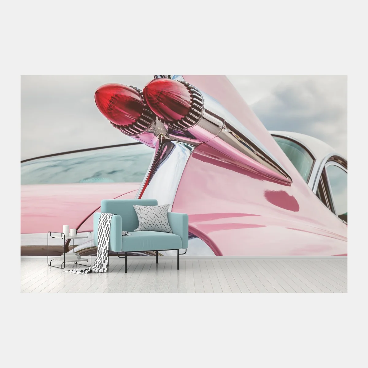 Fototapete Rosa retro klassisches auto heckflosse