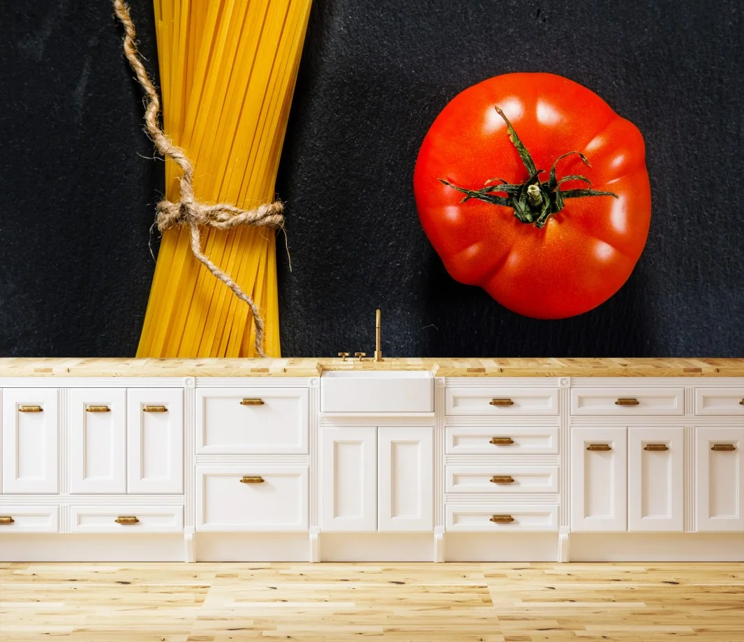 Fototapete Minimalistische spaghetti- und tomatenkomposition