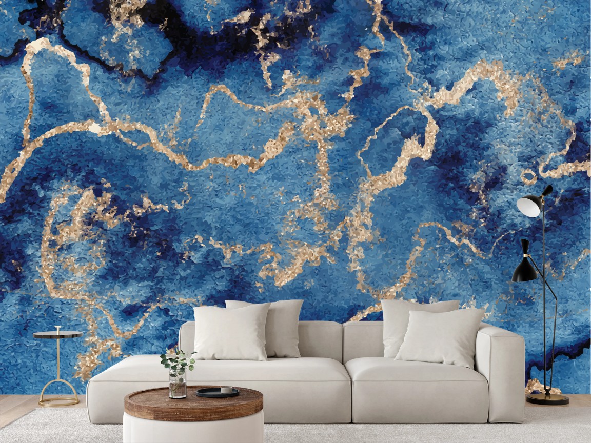 - abstrakt, aquarell, wandkunst, luxuriös, elegant, goldene adern, marmorstruktur, modernes design, marineblau, blauer marmor
