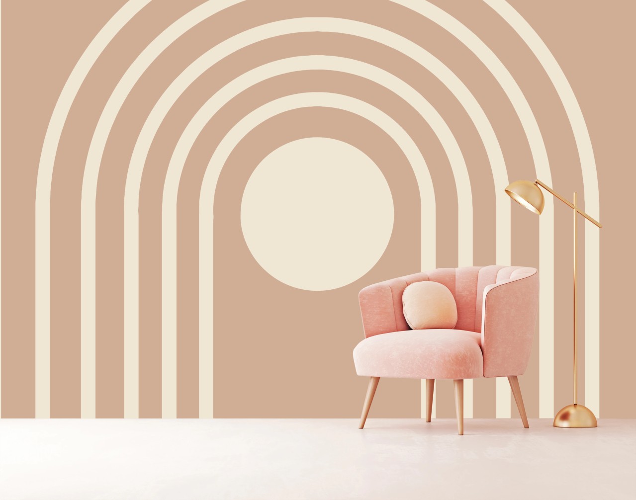 minimalistisch, modern, abstrakt, pastell, wanddeko, geometrisch, beige, retro, bogen, midcentury