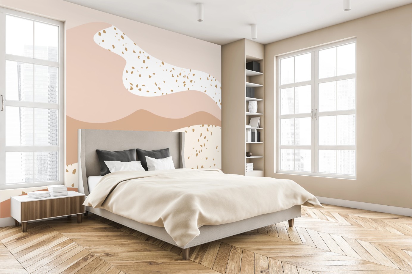 - minimalistisch, modern, landschaft, berge, abstrakt, pastell, boho, beige, wüste, terrazzo