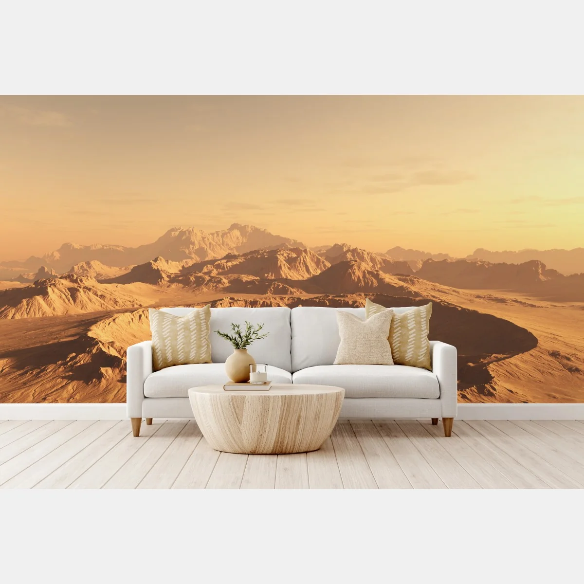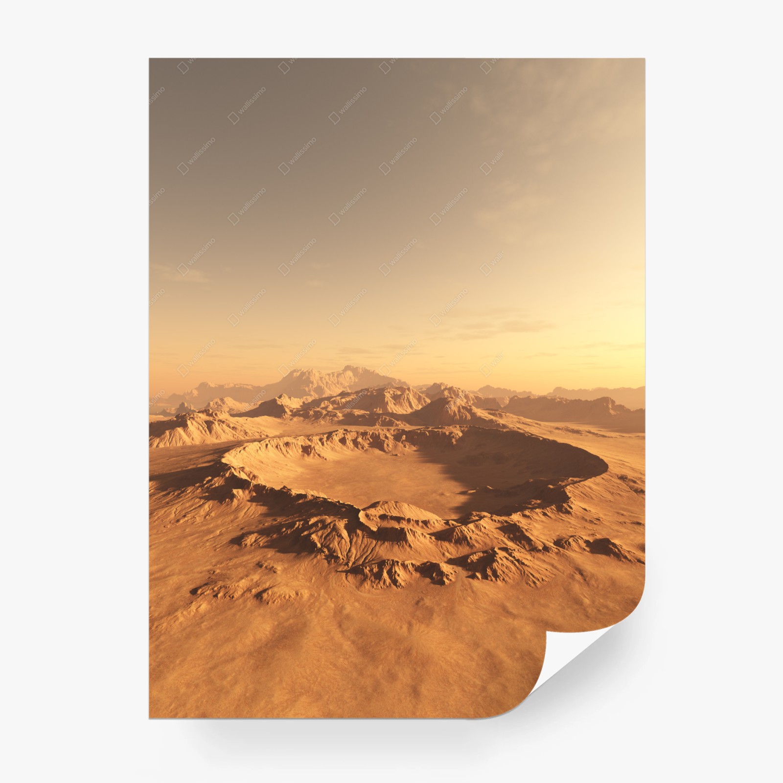 Erleben Sie die ruhige Weite eines sonnenbeschienenen Wüstenkraters in warmen Tönen, perfekt als natürlicher Blickfang für jeden Raum.MehrWeniger
