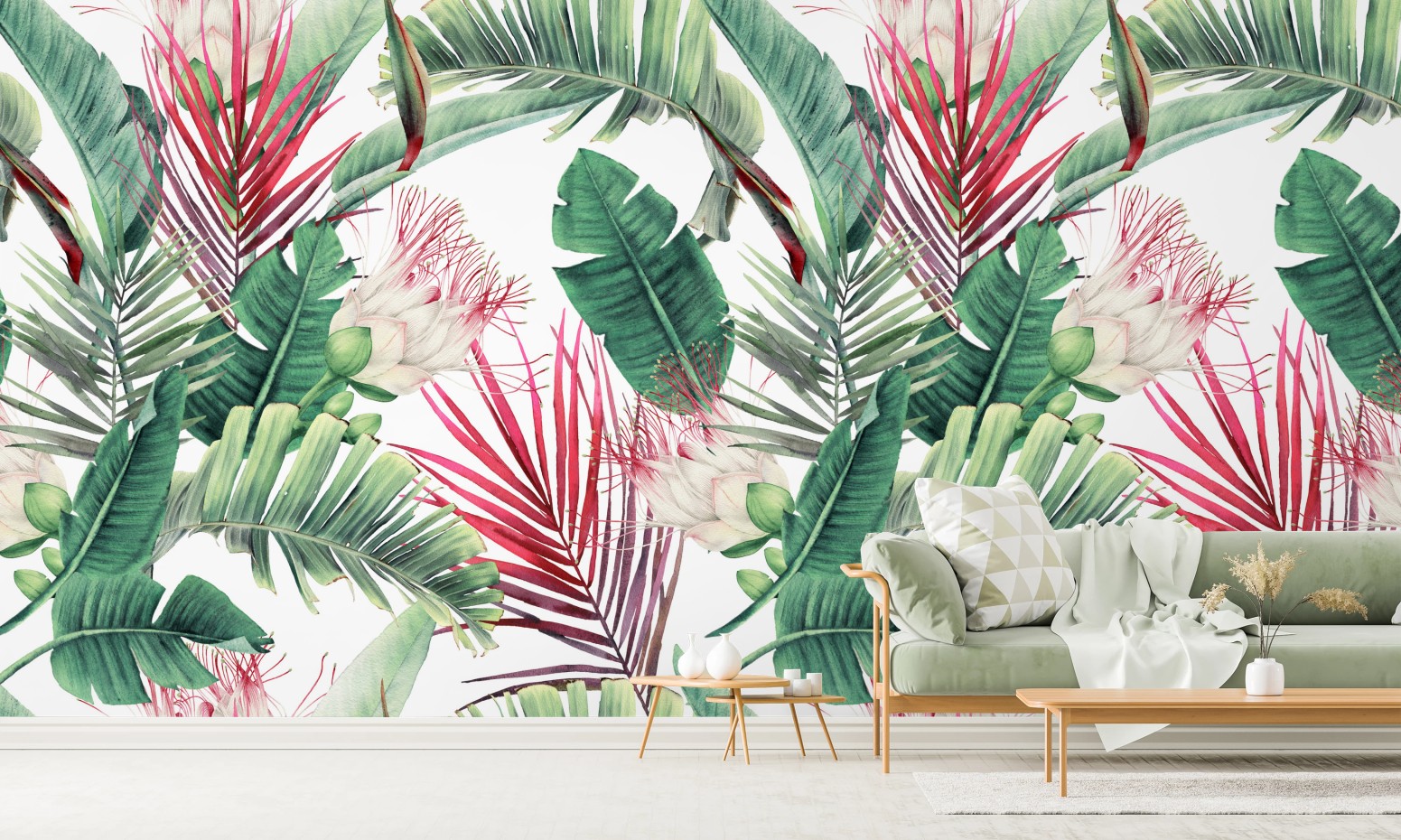 Fototapete Tropisches blumenmuster in aquarell