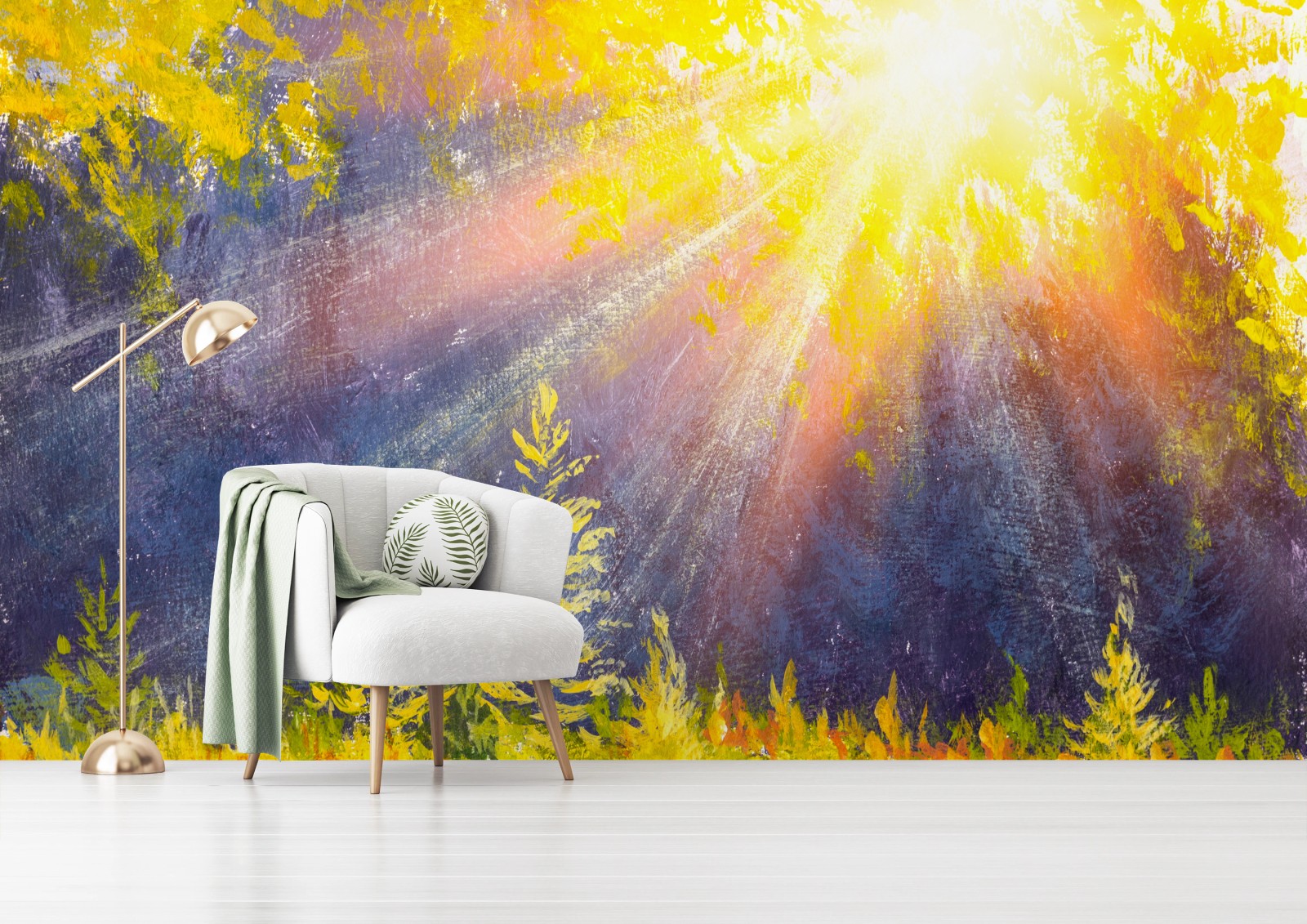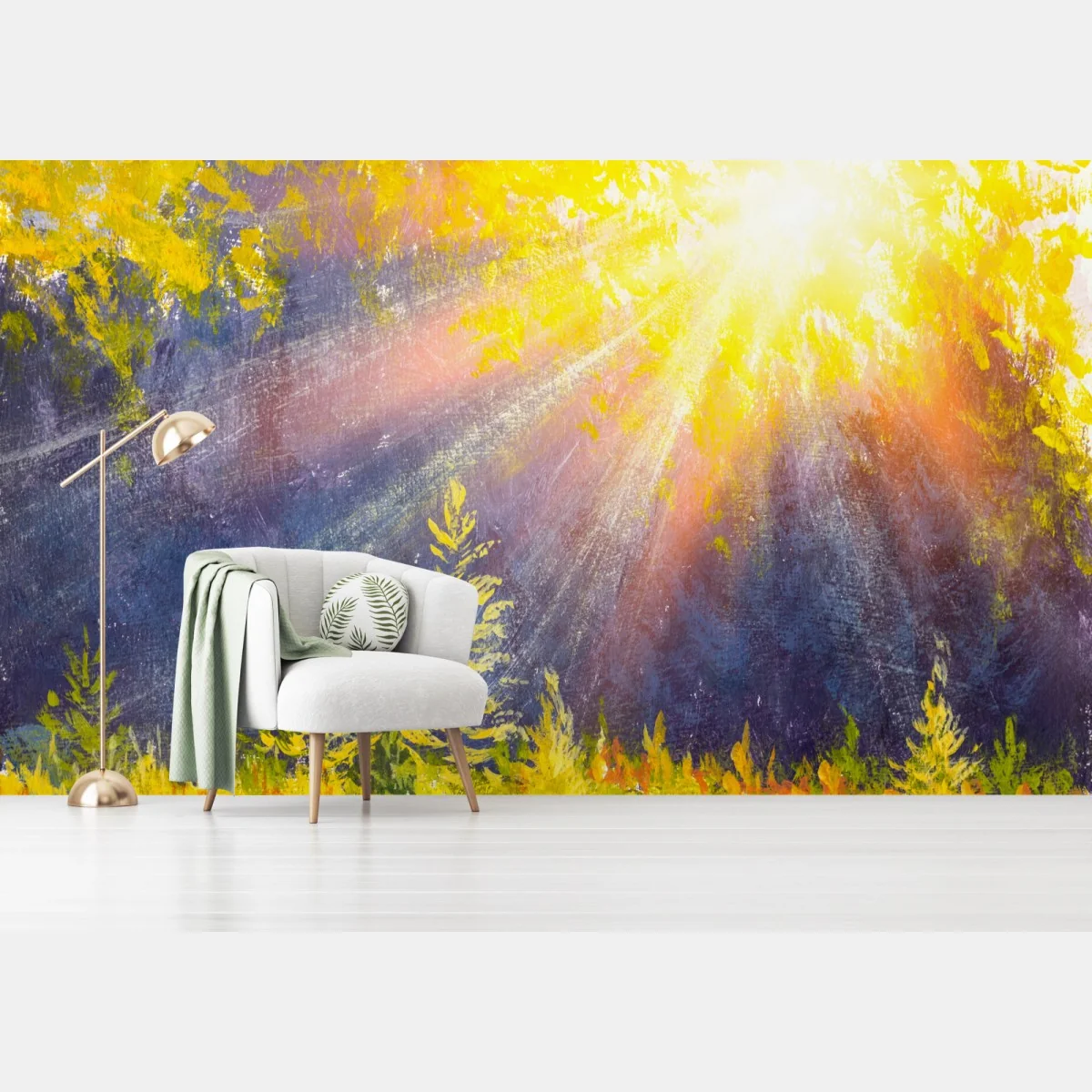 Fototapete Goldener waldesglanz aquarell