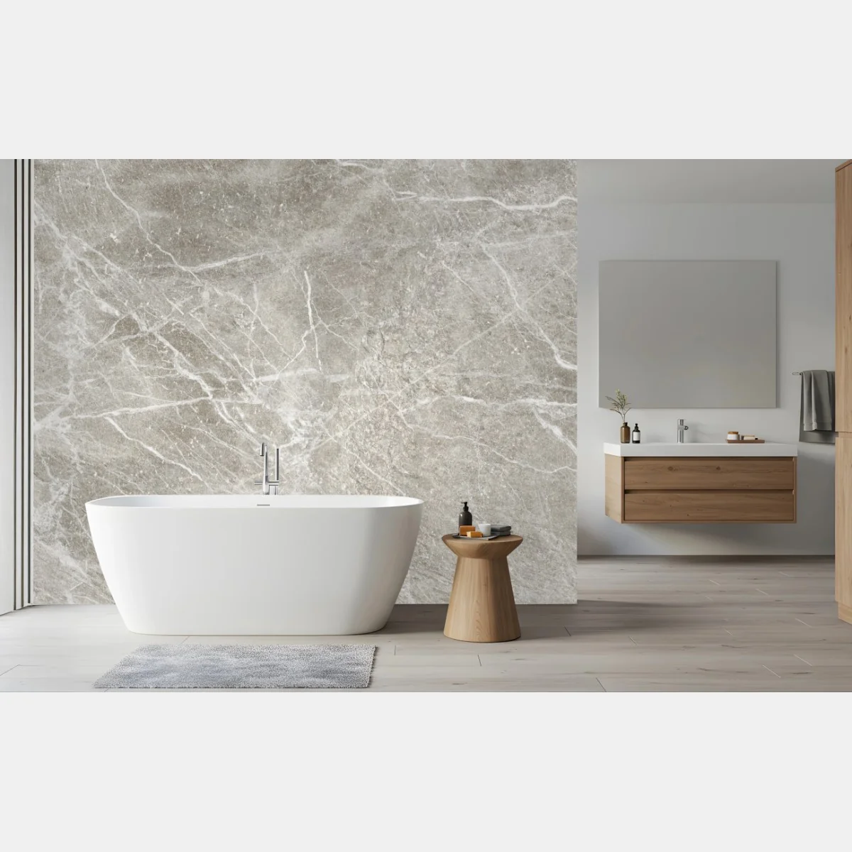Verleihen Sie Ihrem Raum zeitlose Eleganz mit einer zarten grauen Marmortextur, ideal für minimalistische Einrichtungen.MehrWeniger