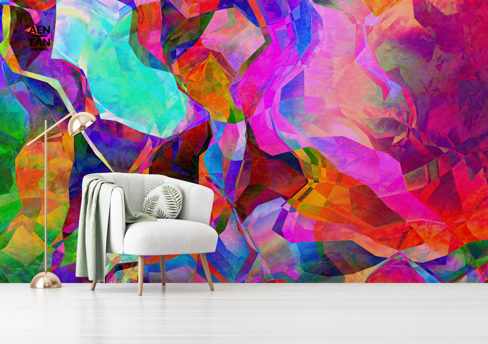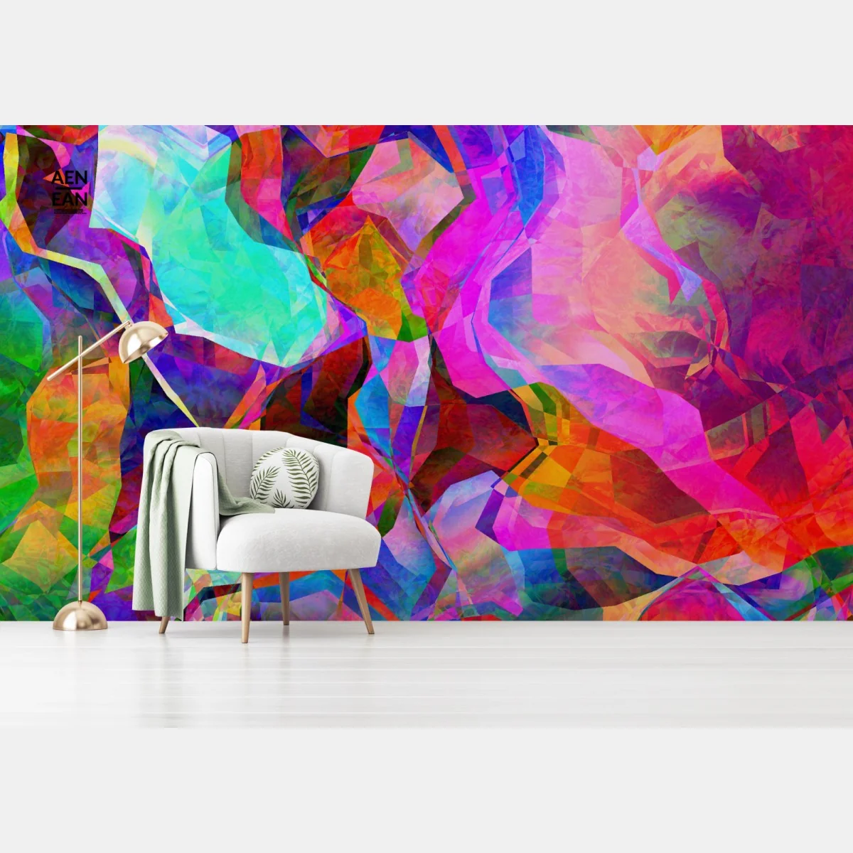 Bringt kräftige Farben und dynamische Formen in den Raum mit dieser lebendigen geometrischen Abstraktion, ideal für moderne Einrichtungen.MehrWeniger