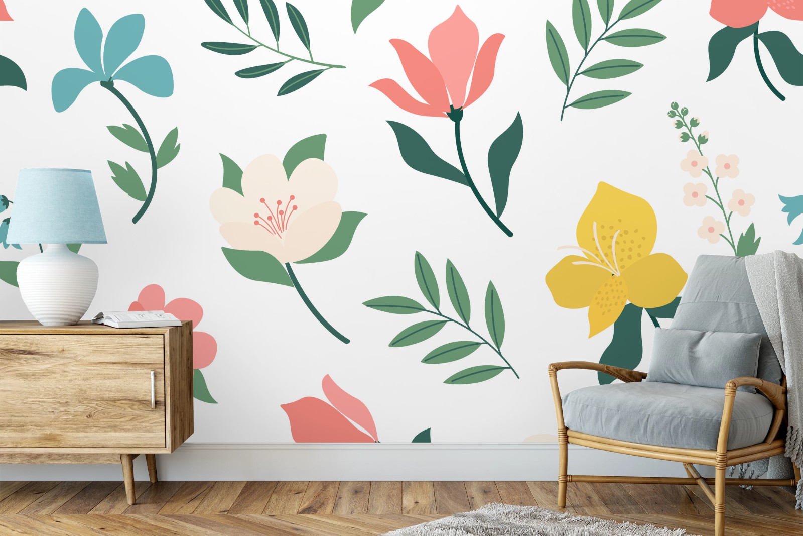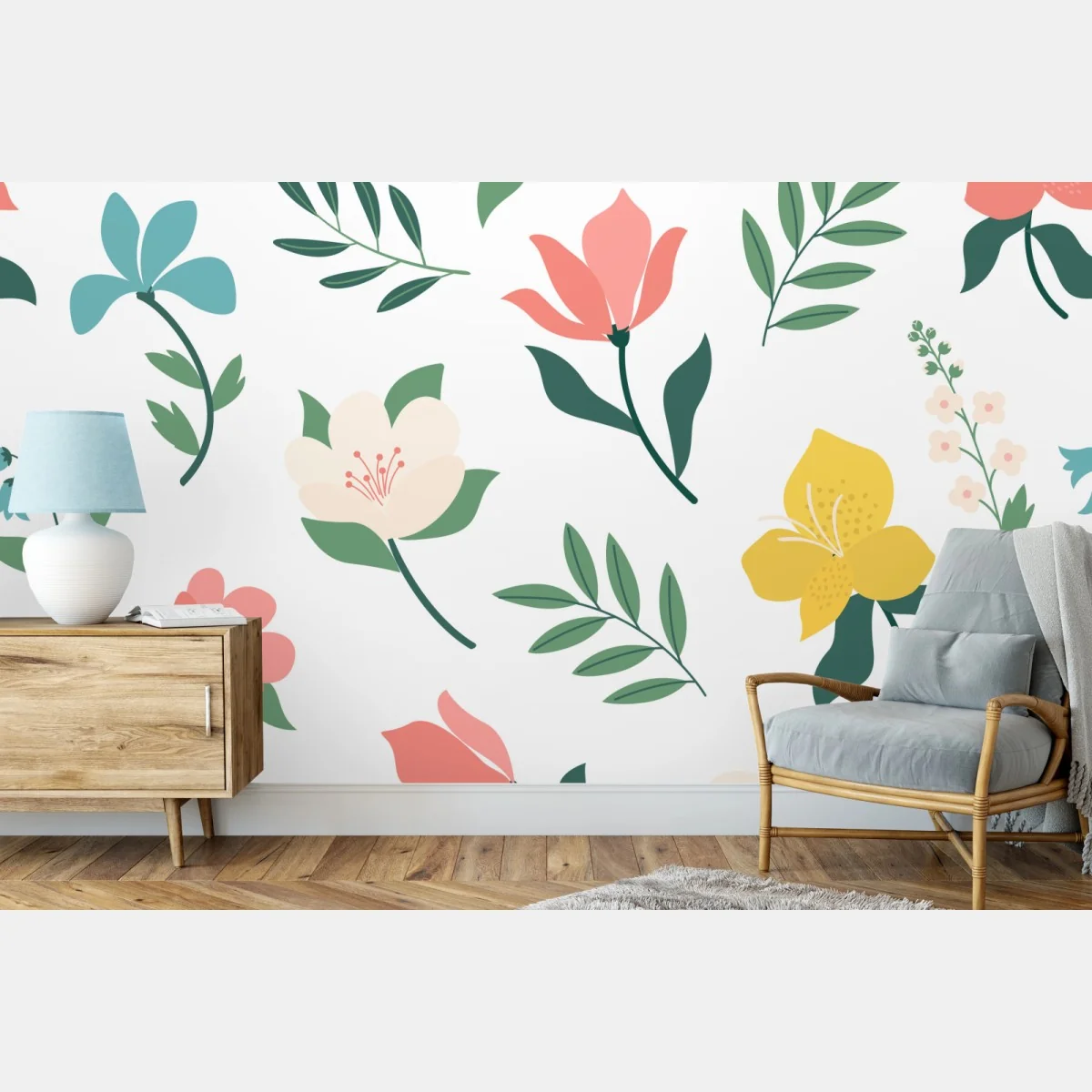 Verleihen Sie jedem Raum eine sanfte, natürliche Note mit diesem zarten Pastell-Blumenmuster, das Eleganz und Frische ausstrahlt.MehrWeniger